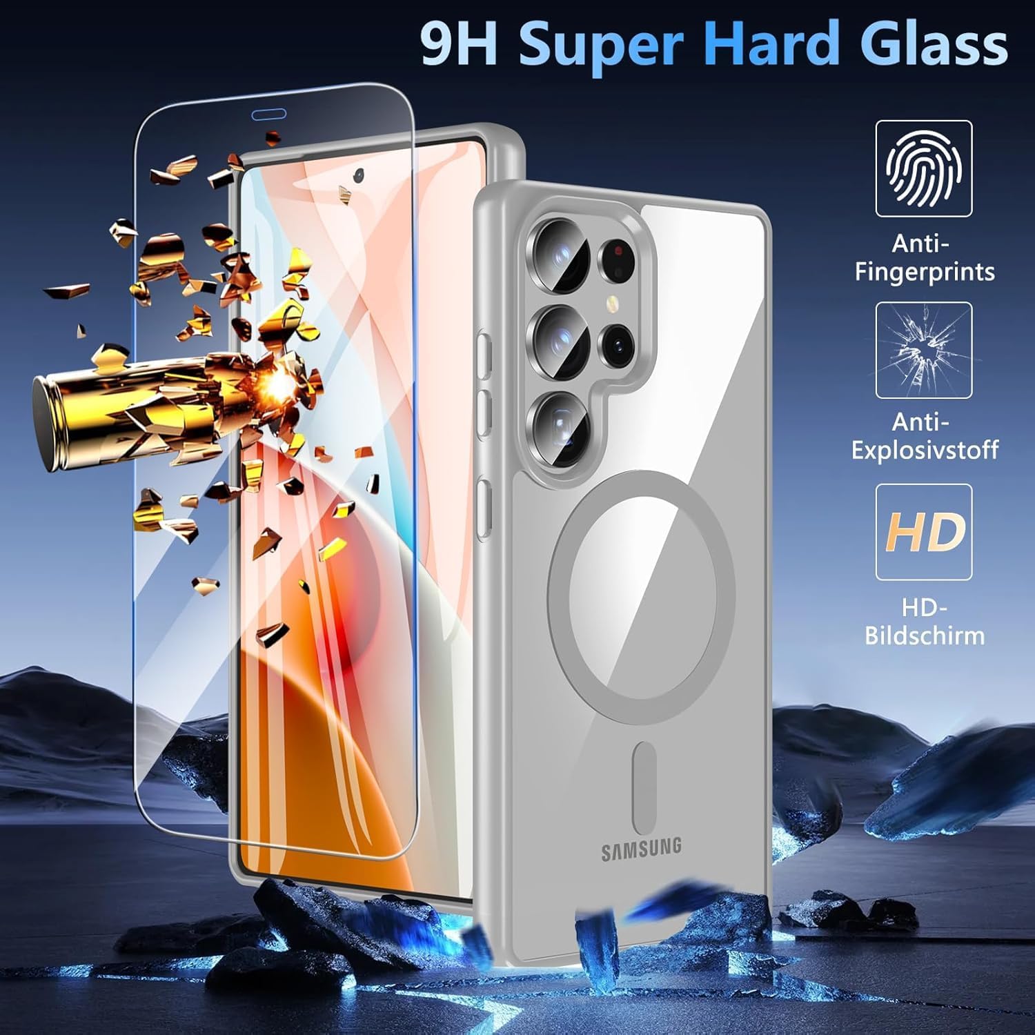• Reliable 9H protective glass and camera protection: The screen protector of the Samsung S25 Ultra case is made of shatterproof 9H aluminium silicate glass that resists scratches and chips, provides a bare touch feel on the screen and increases visual quality by a 1.5 mm raised screen edge and 1.2 mm raised camera edge to lift the screen and camera from flat surfaces to protect the front screen and rear camera from breakage.