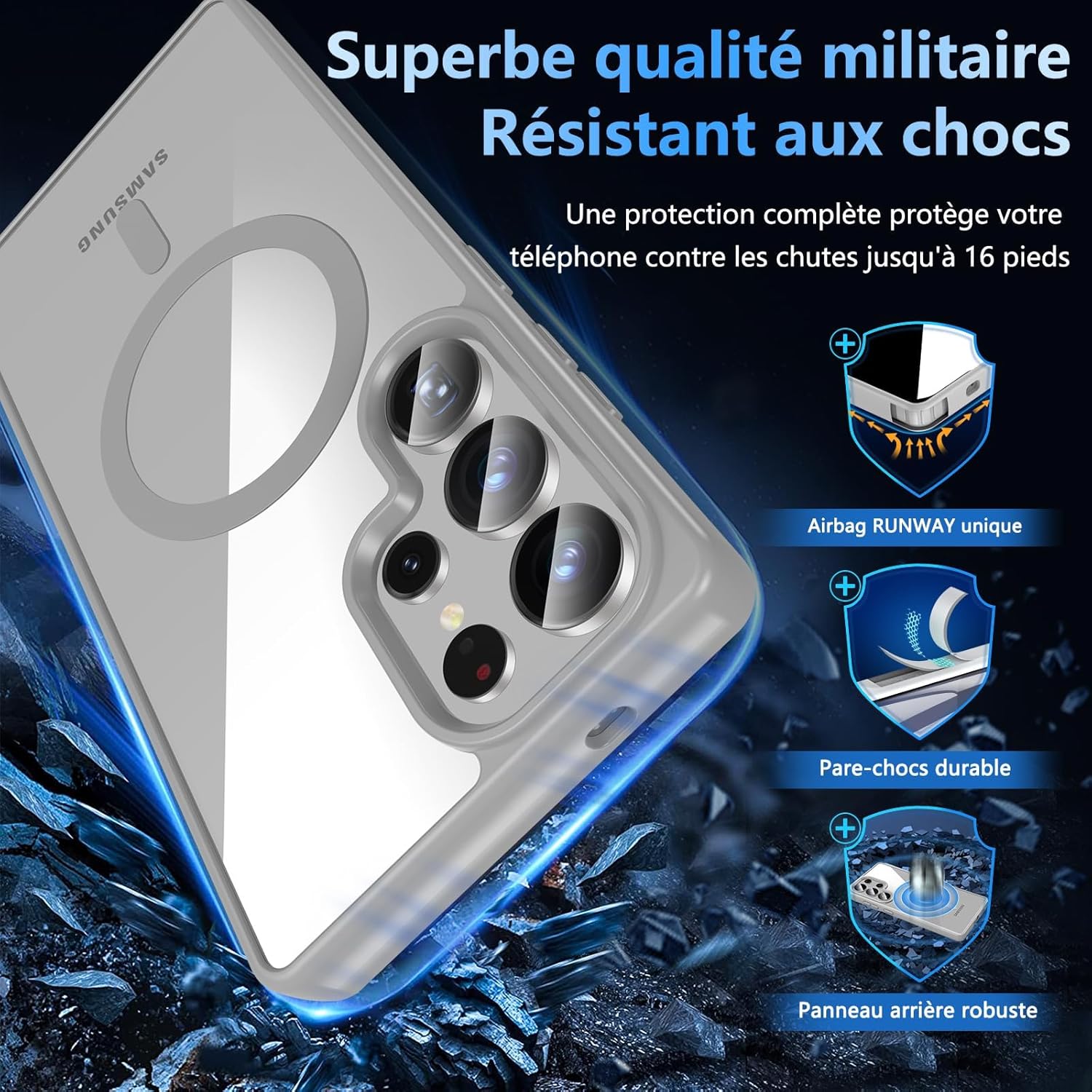• Certified military-grade drop-tested: The Samsung S25 Ultra case has been thoroughly hardened by combining a high-impact polycarbonate (PC) screen protector, durable silicone protective back and flexible soft thermoplastic polyurethane (TPU) edge. The 4 corners with anti-collision angle technology mean the case can endure 1000+ times drops with zero damage from a 3 m height. This certified MIL-STD drop-test shockproof Samsung S25 Ultra 5G case provides the toughest protection for your phone from drops, scratches, bumps and shocks.