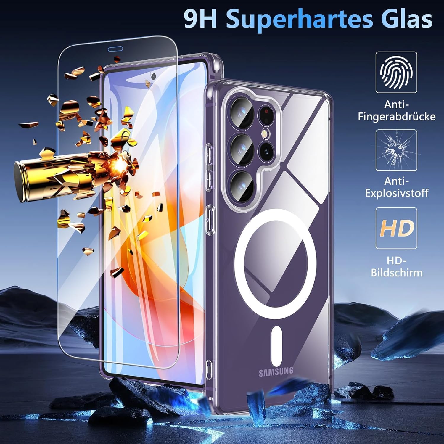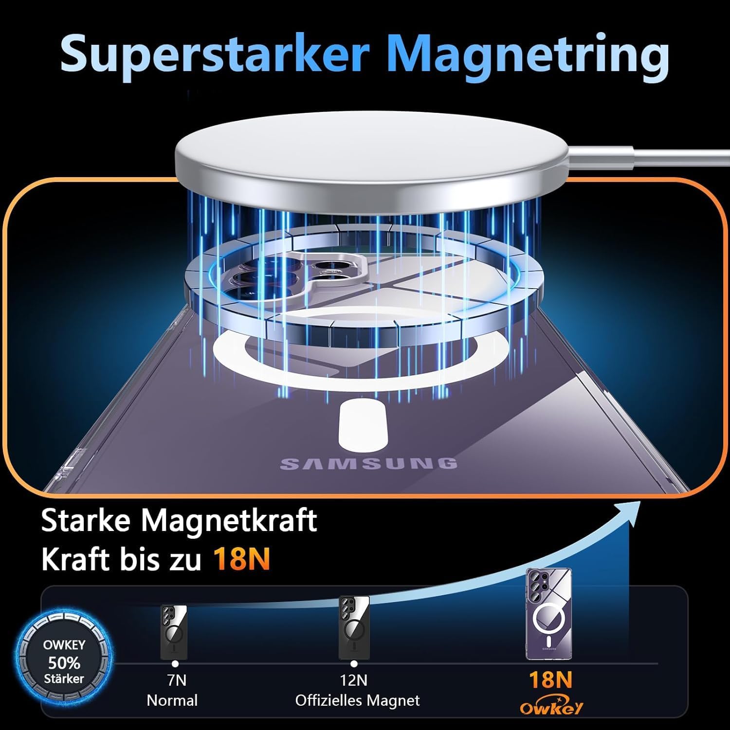 OWKEY Кейс за Samsung Galaxy S25 Ultra 5G за Magsafe със закалено стъкло, [Военен клас защита] Удароустойчив магнитен калъф за мобилен телефон Samsung S25 Ultra, тънък защитен калъф за външен монтаж,
