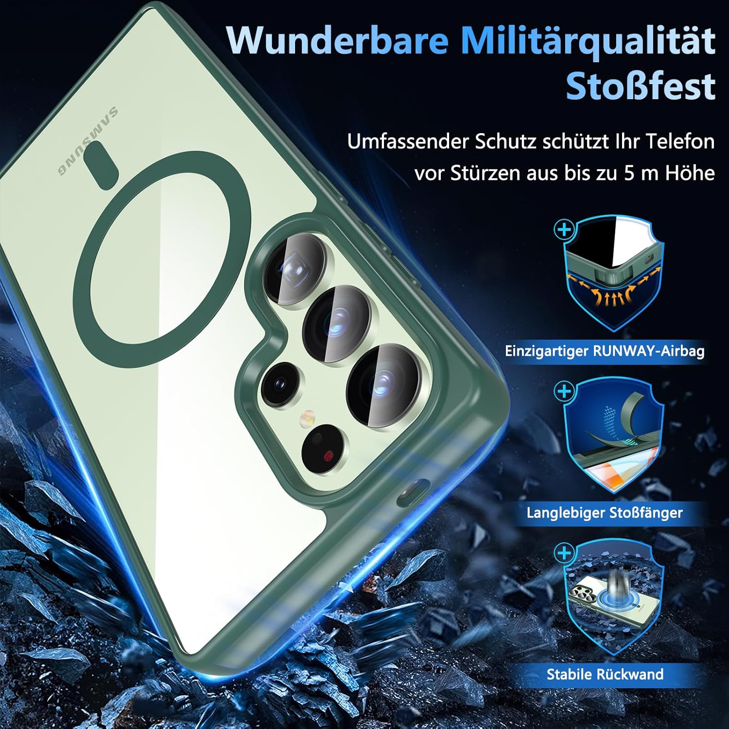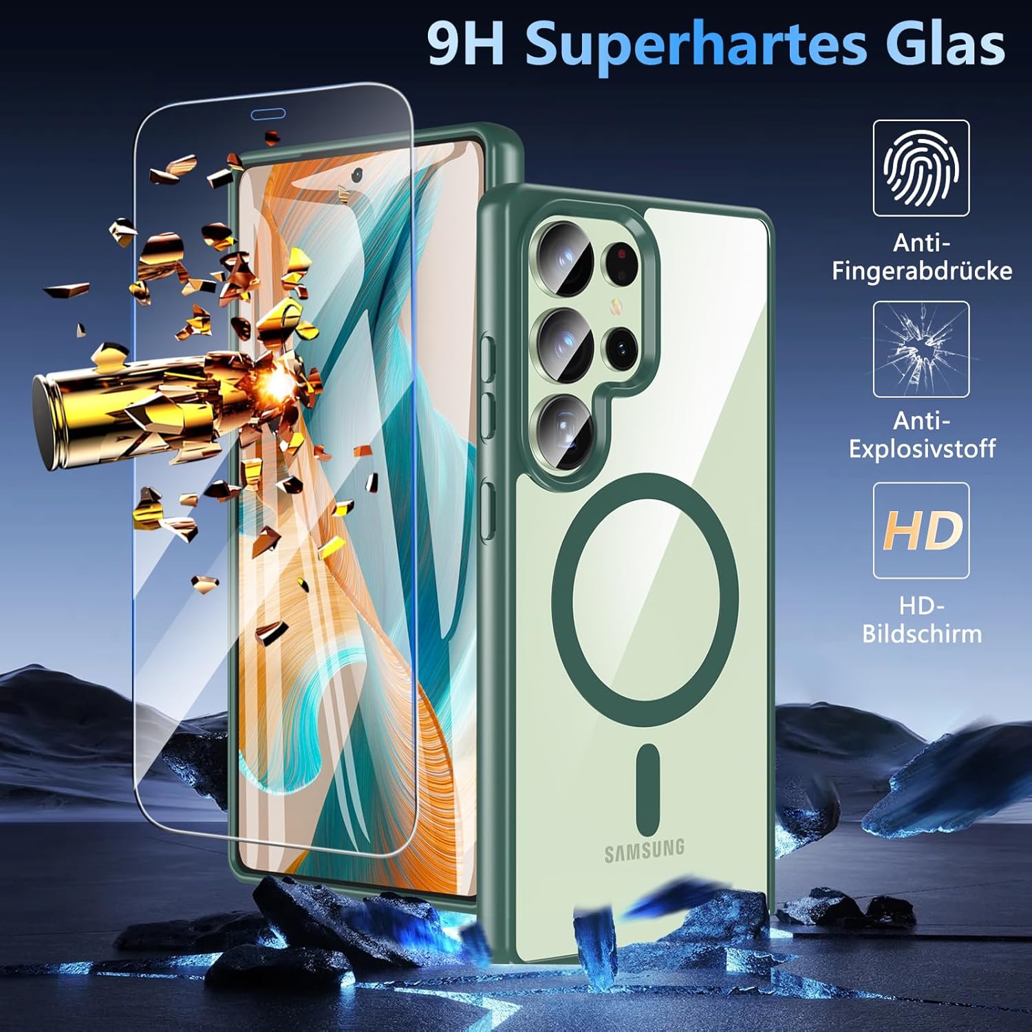 OWKEY Кейс за Samsung Galaxy S25 Ultra 5G за Magsafe със закалено стъкло, [Военен клас защита] Удароустойчив магнитен кейс за мобилен телефон Samsung S25 Ultra Тънък кейс за външна употреба, защитен кейс