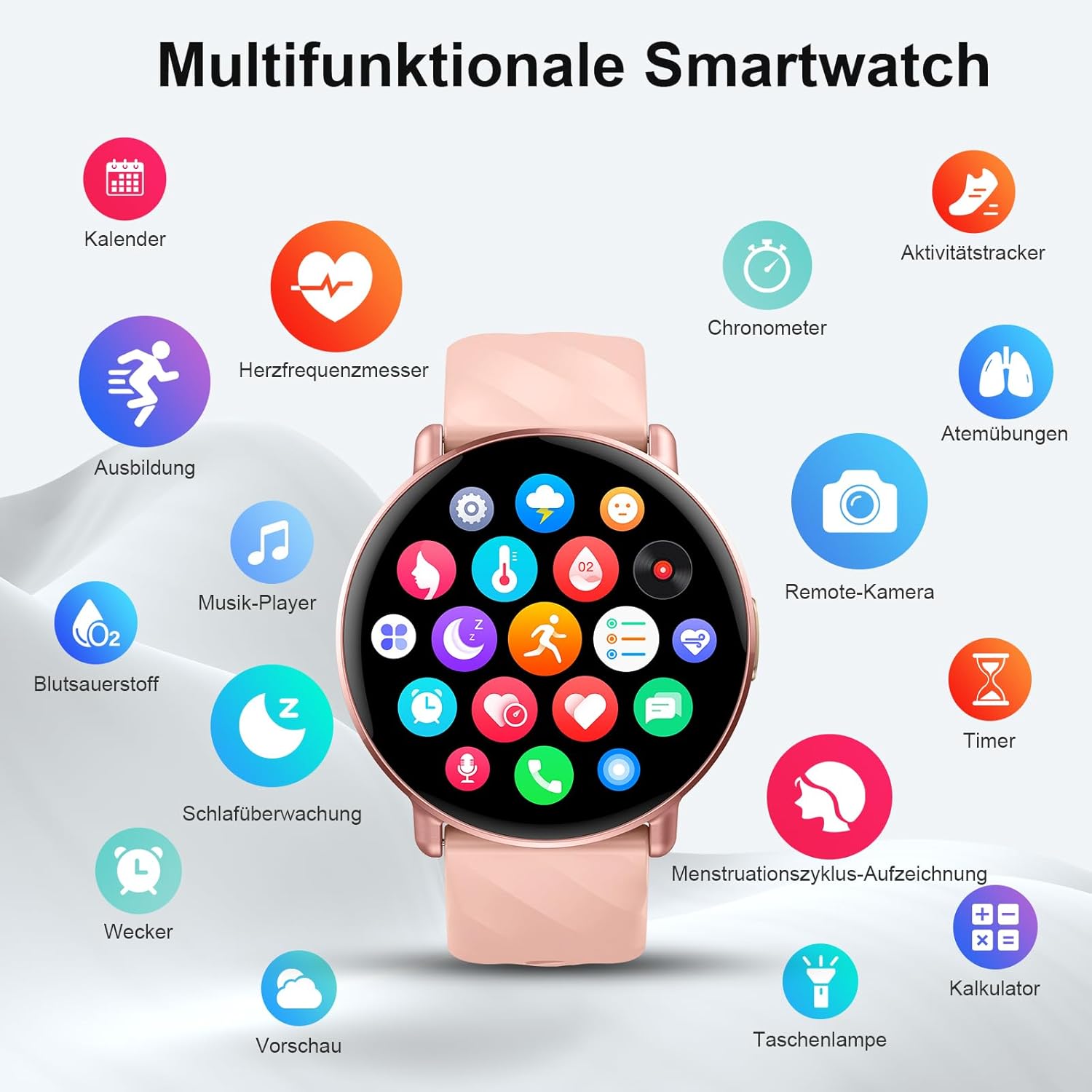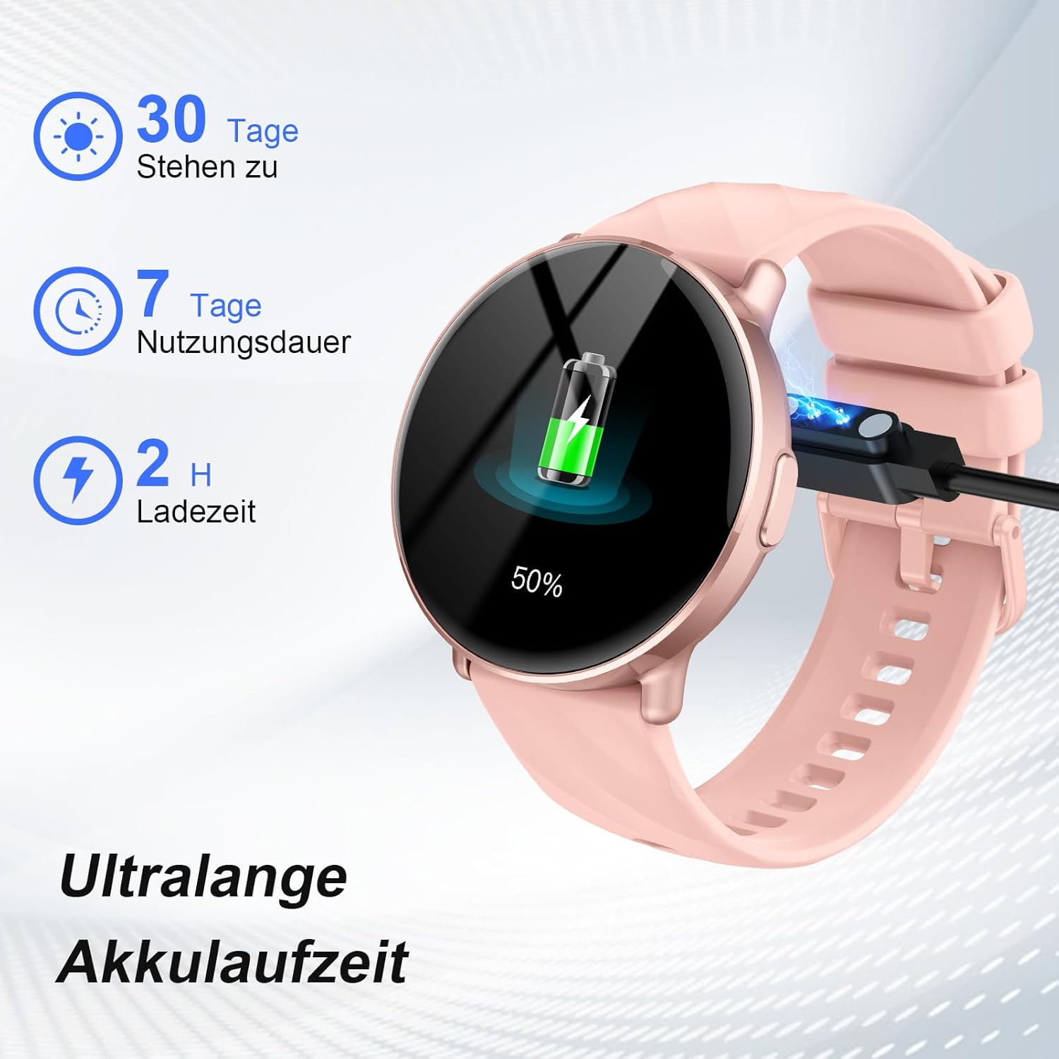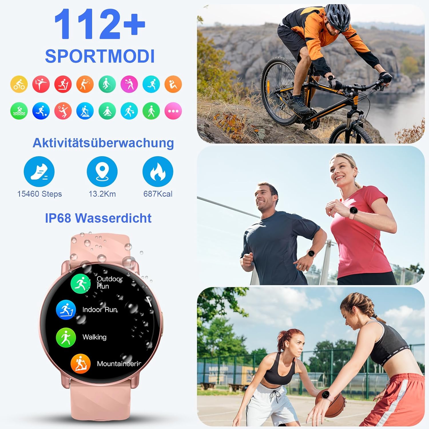 OWMSIC Смарт часовник за мъже и жени 1.39 инча HD сензорен смарт часовник с Bluetooth разговори, 112+ спортни режима, фитнес тракер, SpO2 пулсомер, монитор за сън, броене на крачки, розов