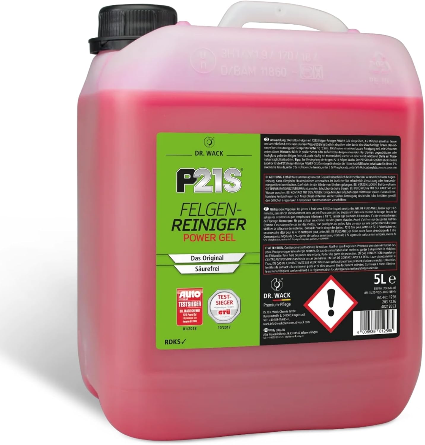 • Оригиналът – почистващият препарат за джанти P21S от Dr. Wack бързо и надеждно премахва най-упоритите замърсявания от спирачките и всякакви замърсявания от пътя.