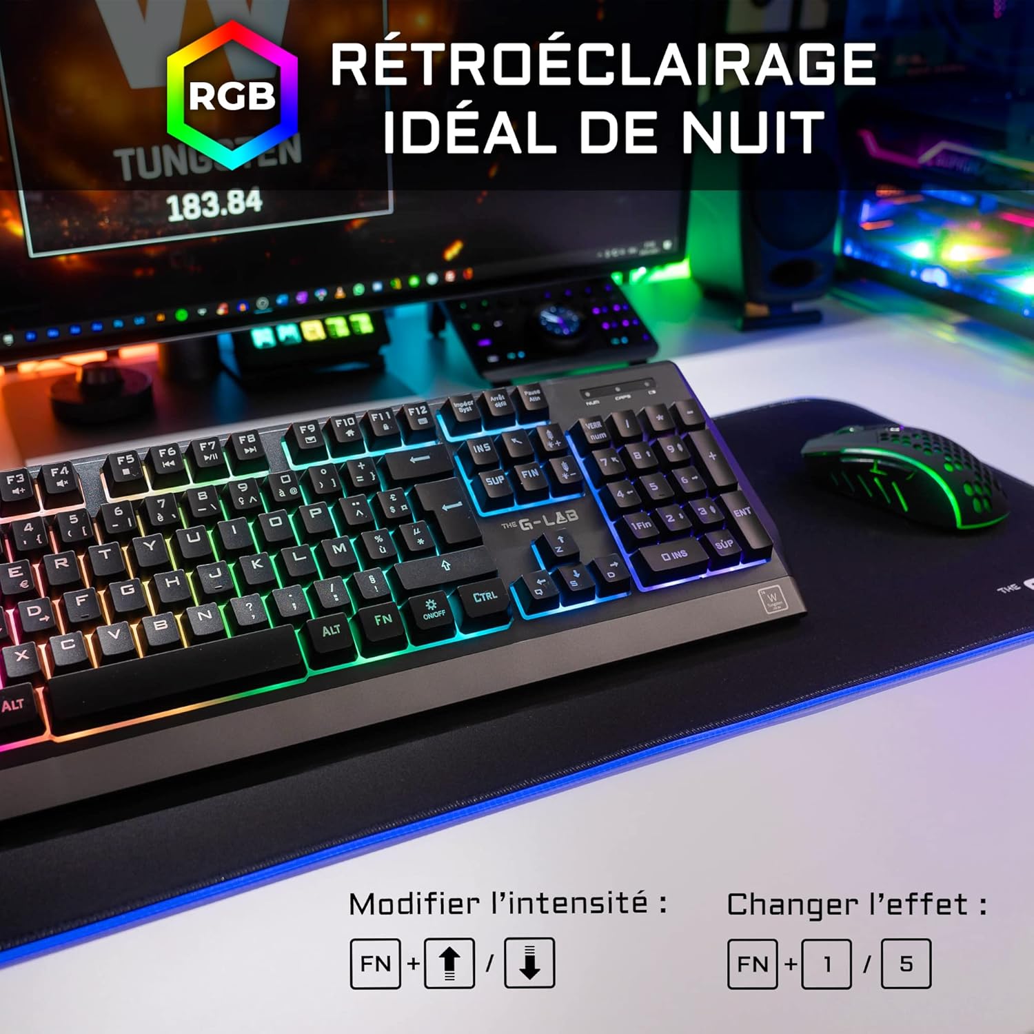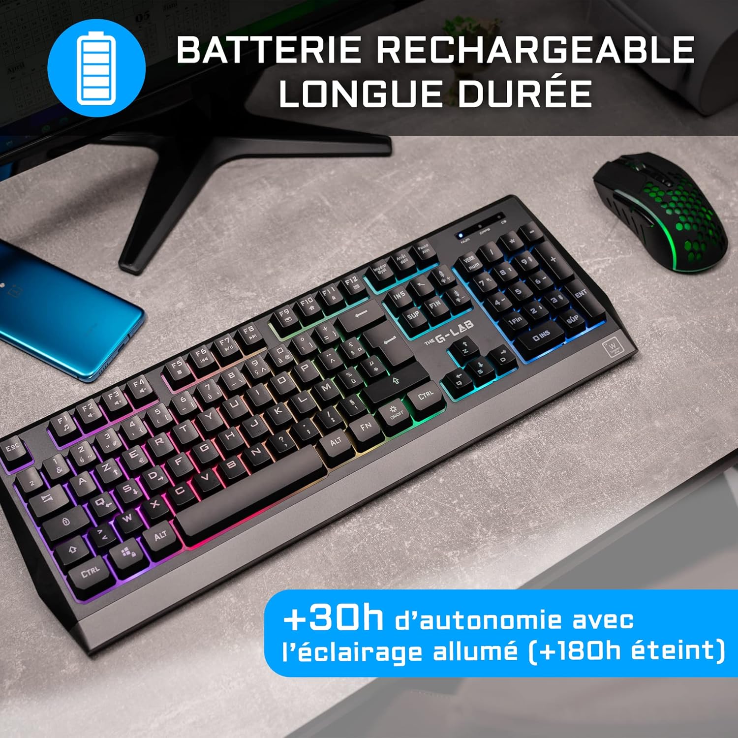 Pack Clavier - Souris Sans fil THE G-LAB Combo Tungsten (Noir)