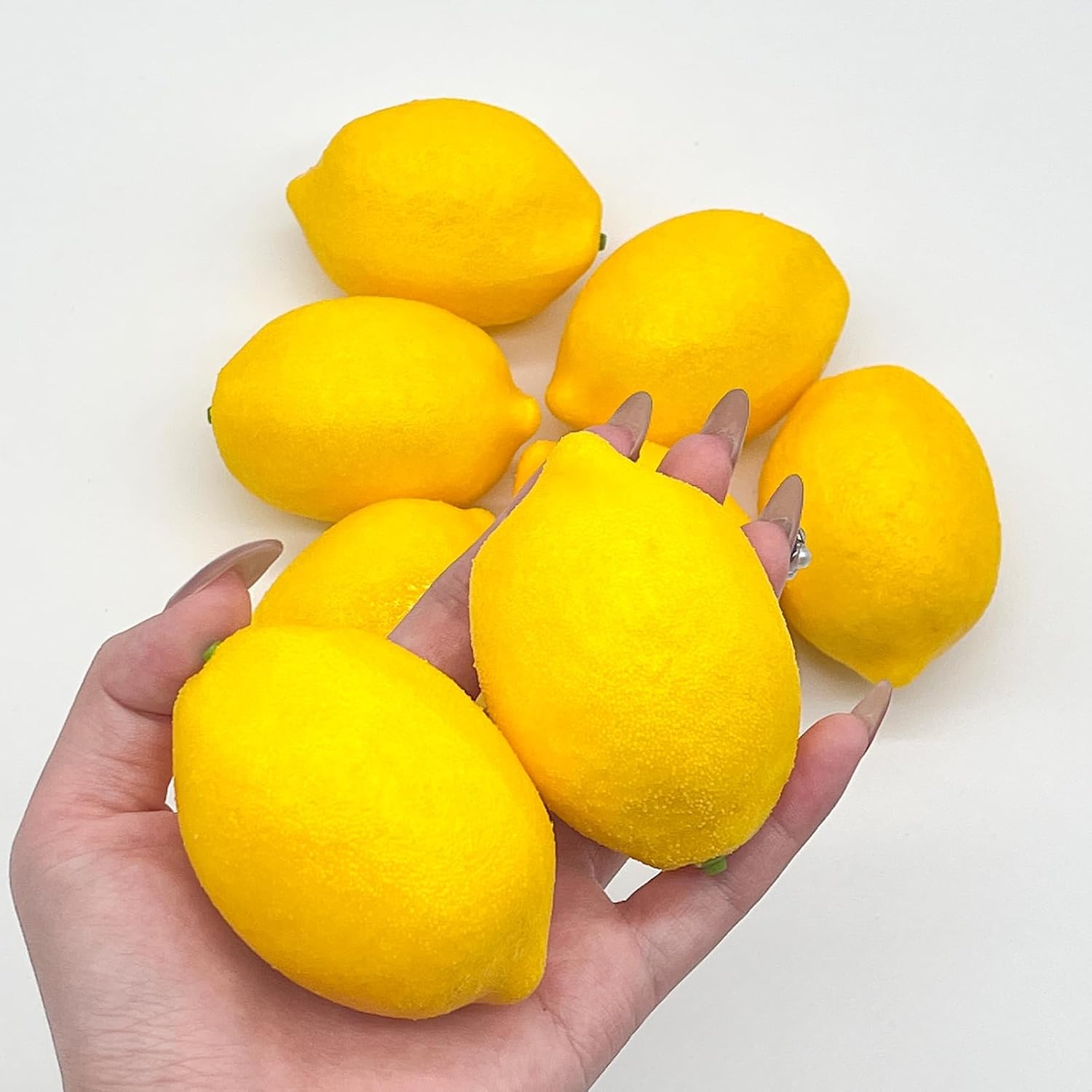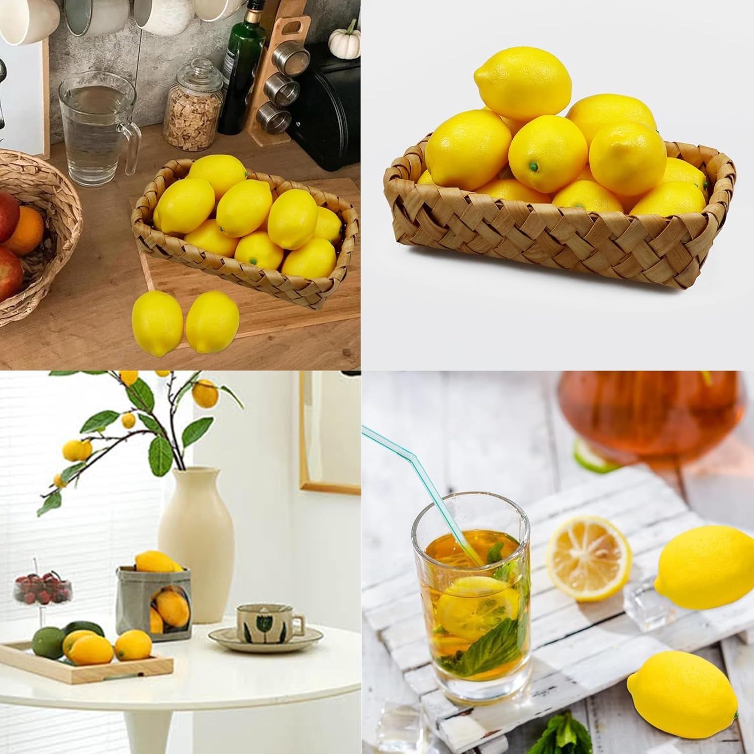 Цветни и издръжливи изкуствени жълти лимони, изработени от пластмаса, ще подобрят декора на вашия дом, излъчвайки красота и гъвкавост.