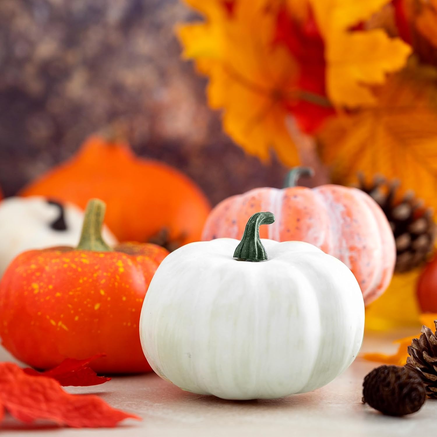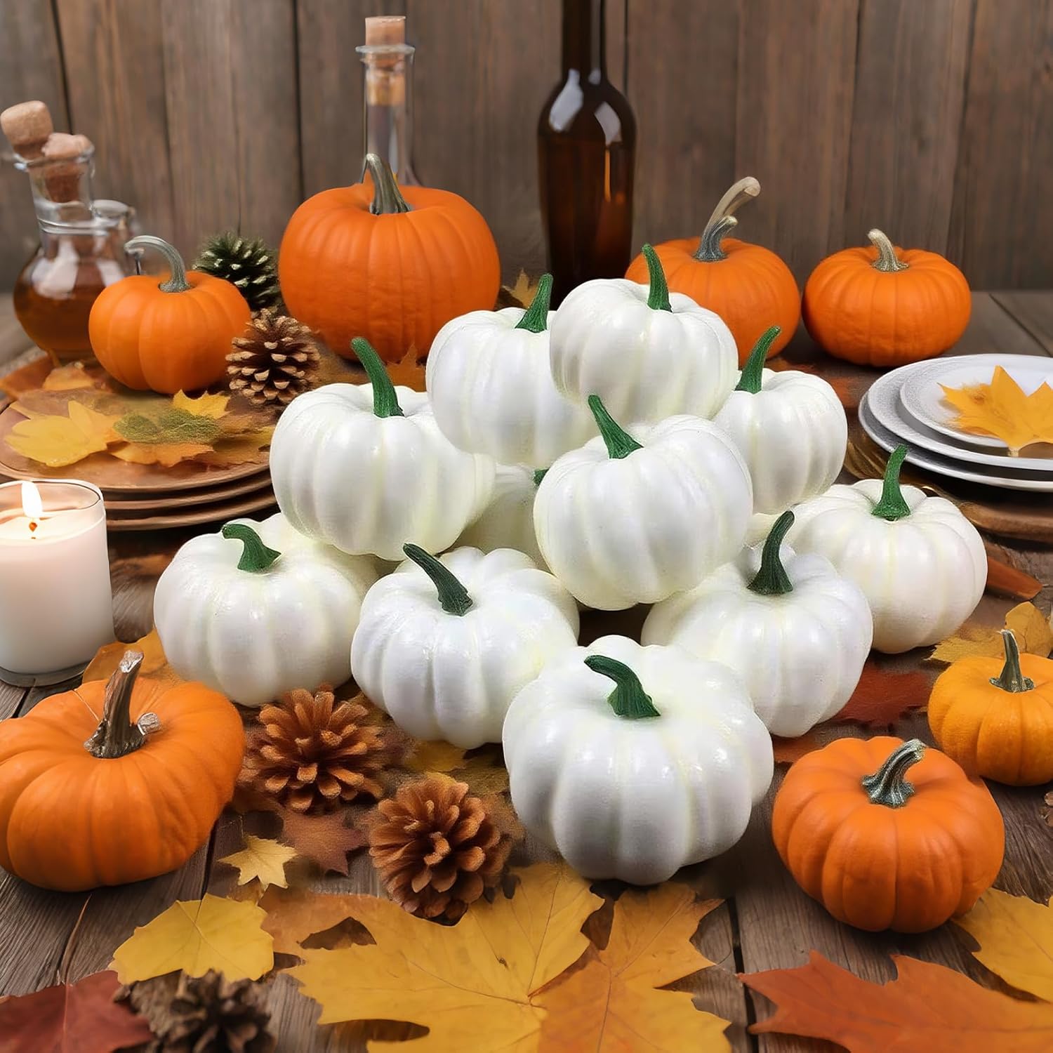 • Универсални: декорация за маса, есенна сватбена украса или като реквизит за многократна употреба за фотосесии - тези бели мини декорации от тикви са подходящи за всеки повод и създават празнична атмосфера.
