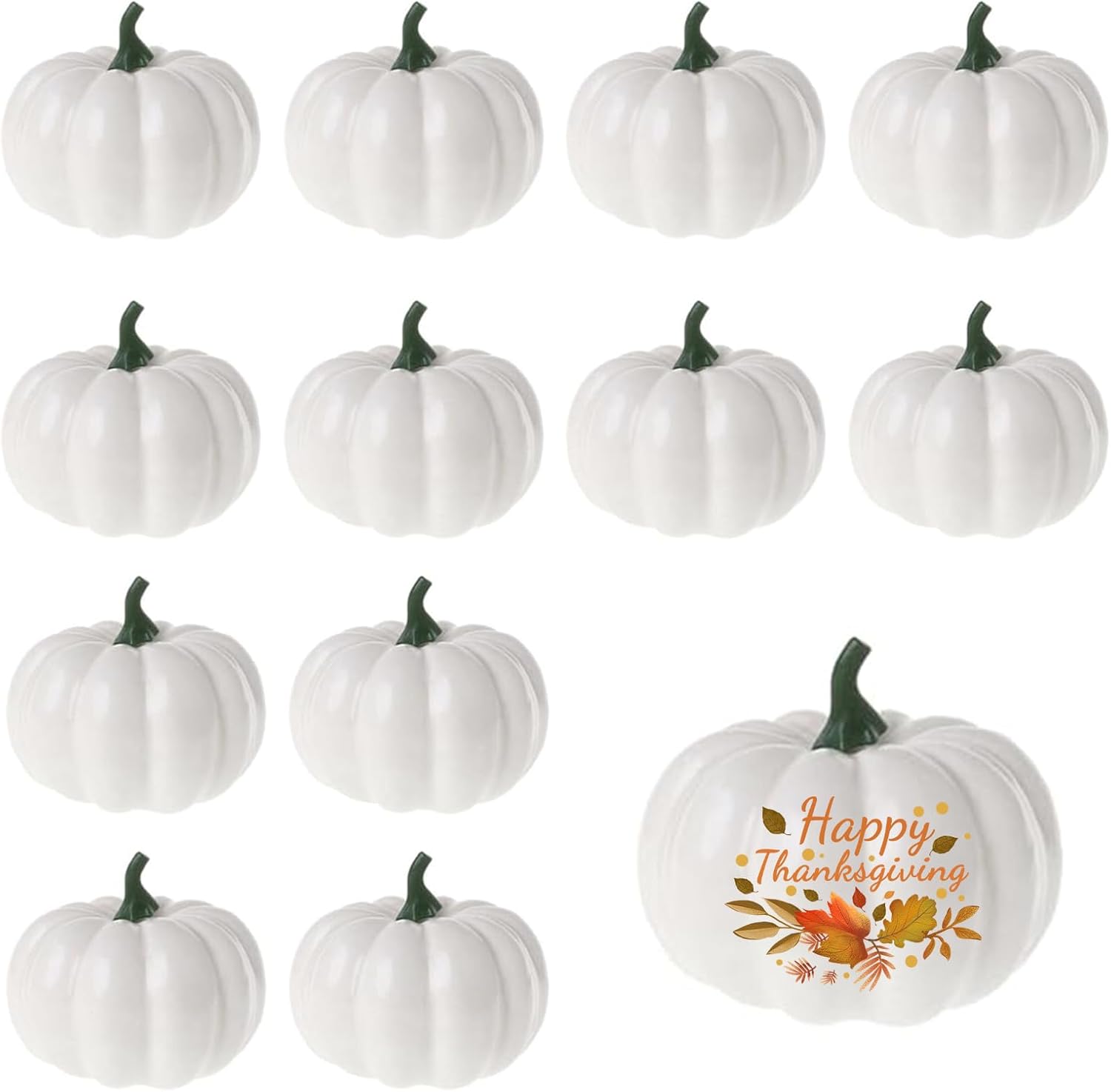 Пакет от 12 изкуствени тикви, есенна декорация, тиква за Хелоуин, изкуствени тикви, мини бяла тиква, декорация за есенни партита, градина, есенна декорация, парти за Хелоуин за Деня на благодарността
