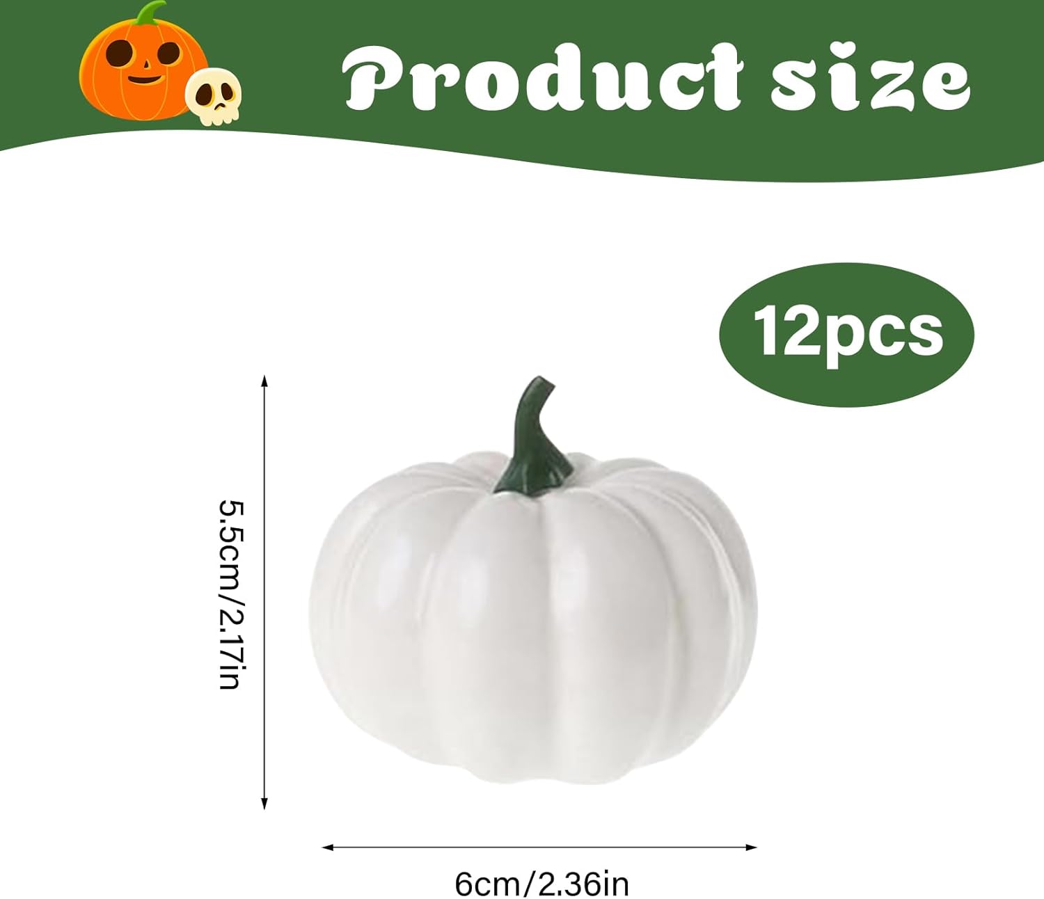 Този комплект от 12 бели изкуствени тикви съчетава декорация, креативност и издръжливост. Независимо дали се използват като стилен декоративен елемент, креативен занаятчийски проект или аксесоар за парти за многократна употреба, тези изкуствени тикви ще внесат есенна атмосфера във вашия дом. Идеални за семейства, партита и креативни умове!