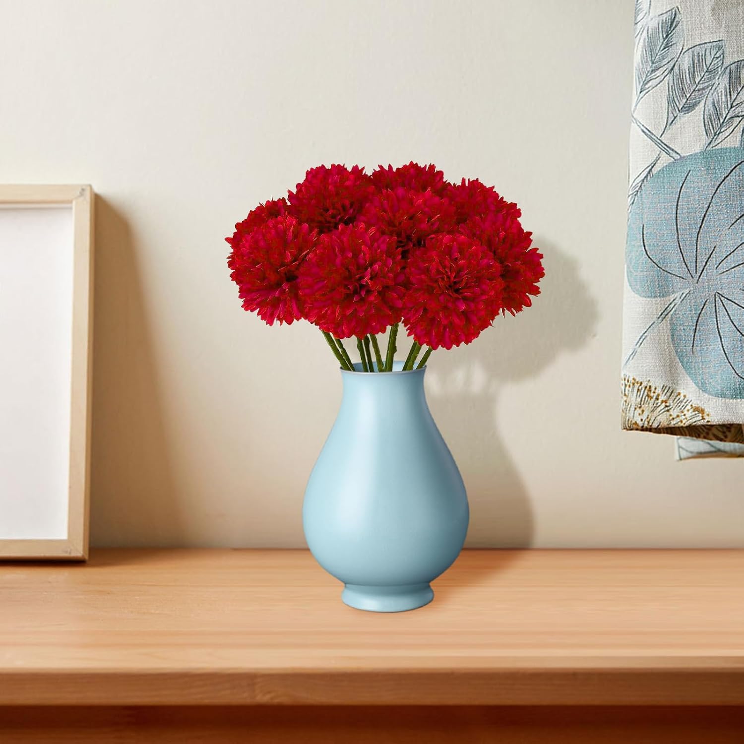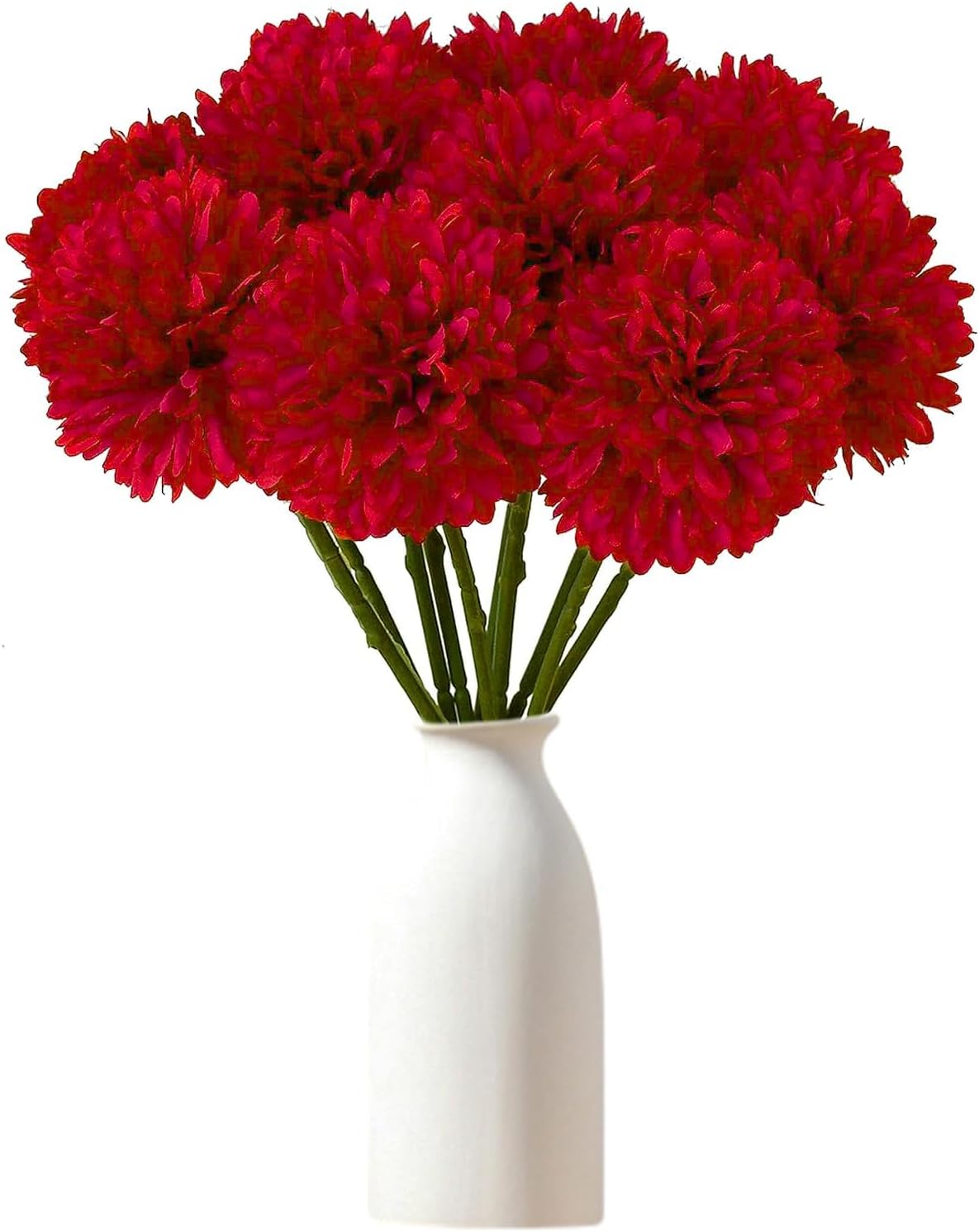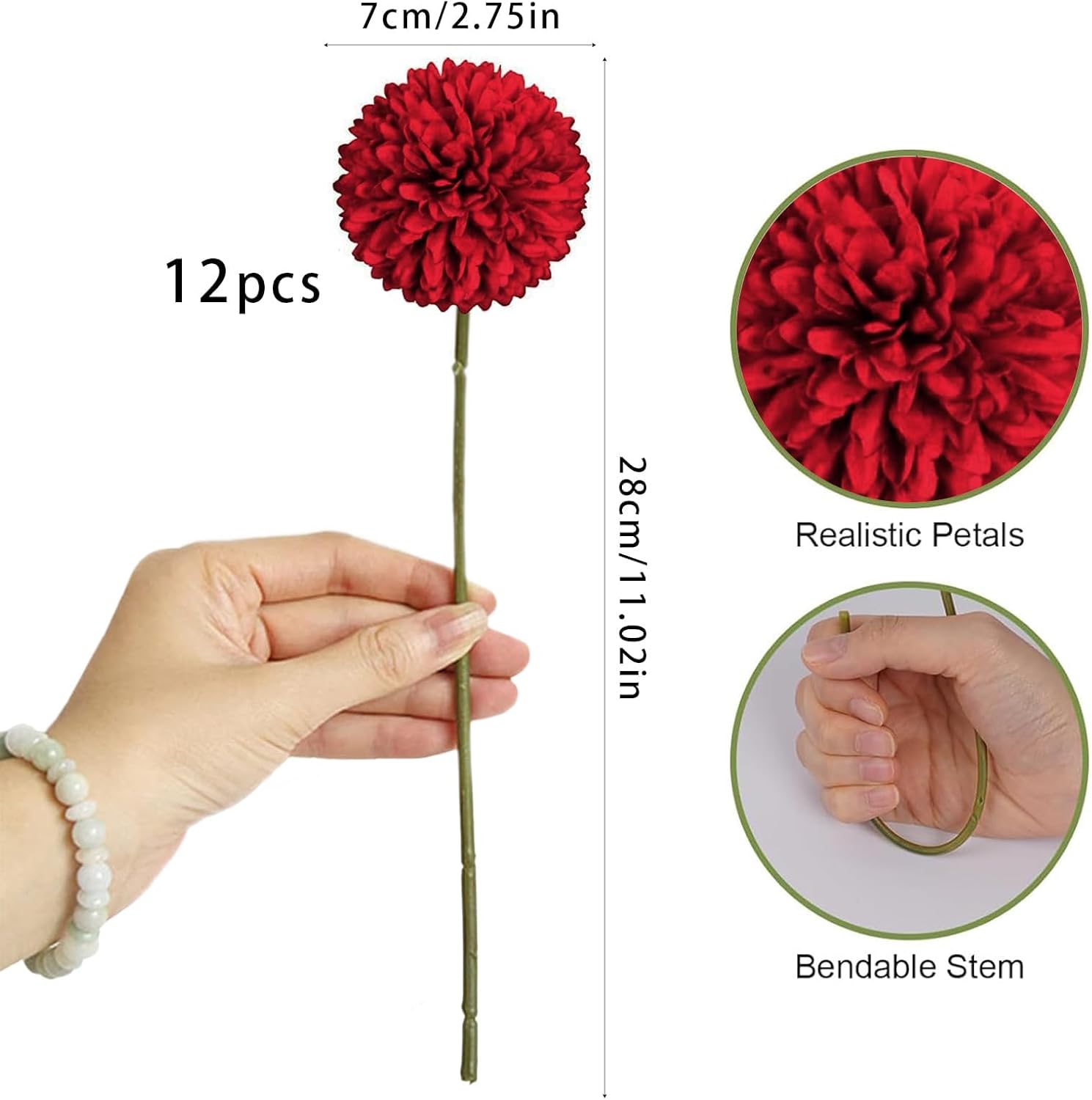 Пакет от 12 изкуствени цветя хортензия, червени изкуствени цветя, хризантема, изкуствена топка, хризантема, копринен помпон, хризантема, за домашно градинско парти, сватбена декорация