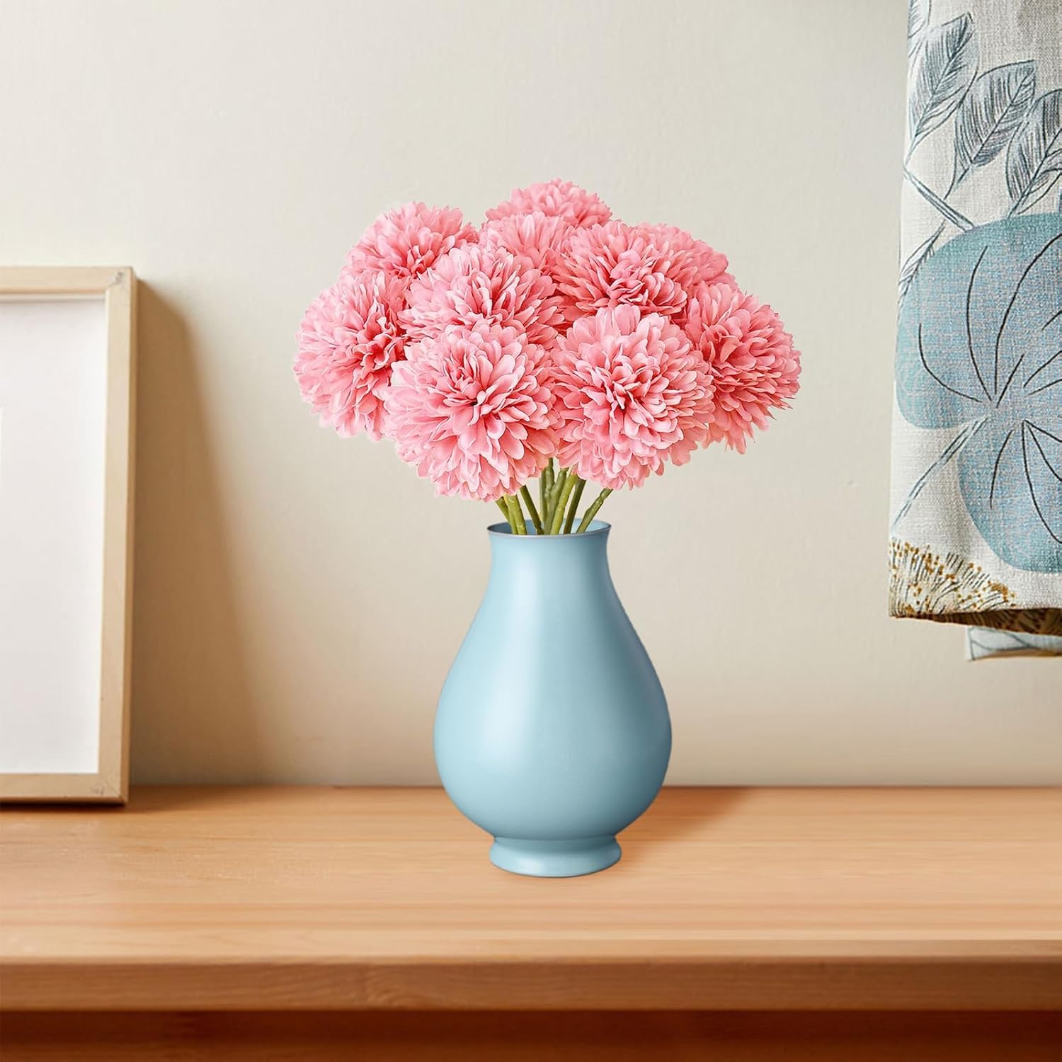 Пакет от 12 изкуствени цветя хортензия, розови изкуствени цветя, хризантема, изкуствена топка, хризантема, копринен помпон, хризантема, за домашно градинско парти, сватбена декорация