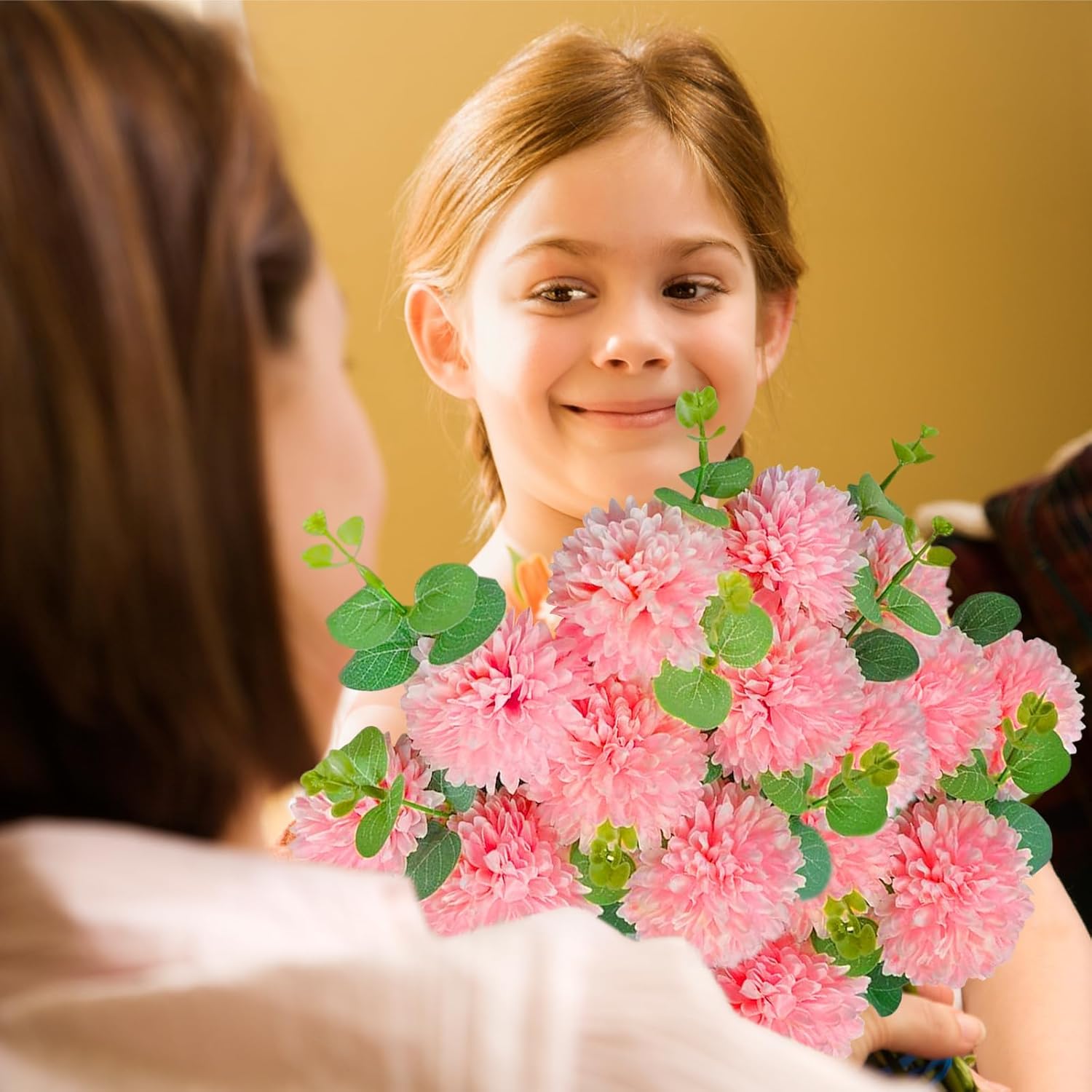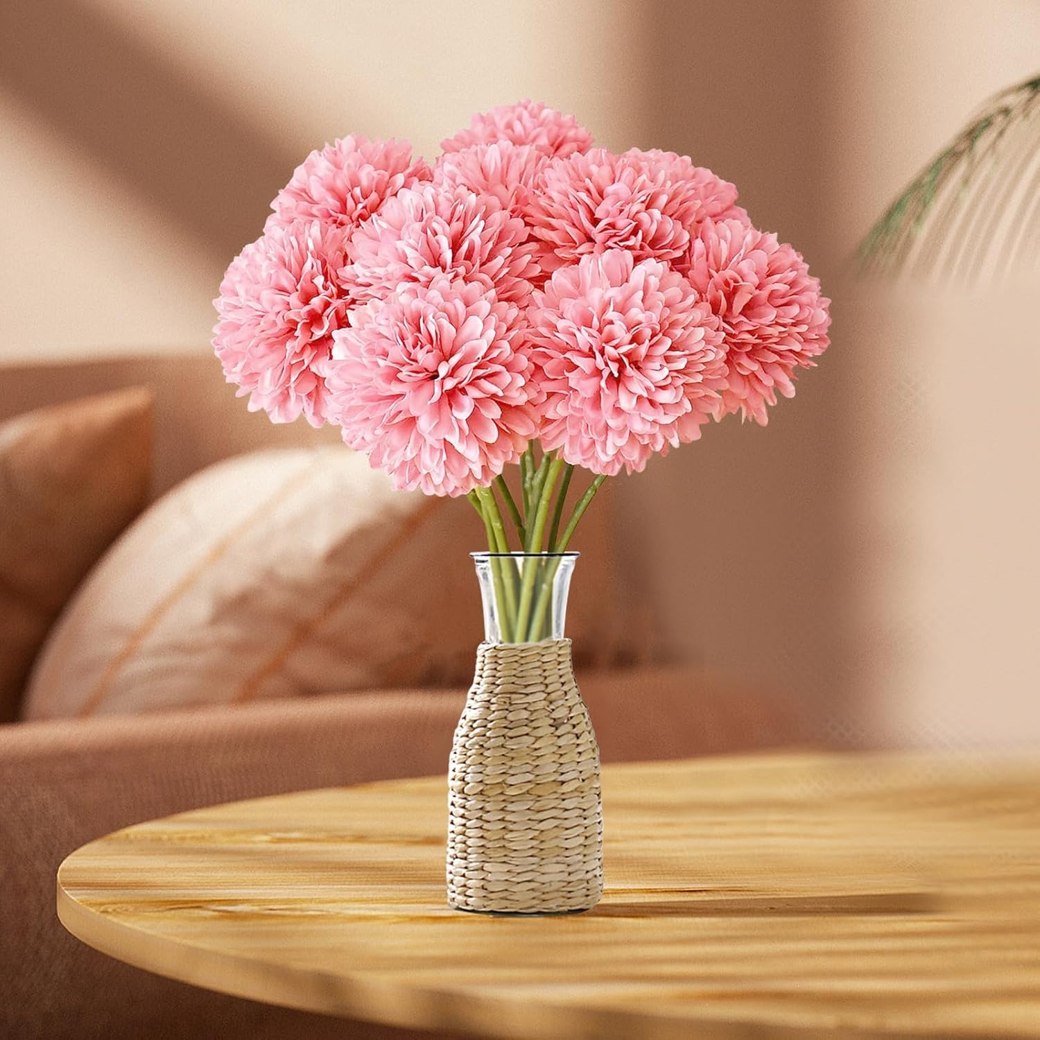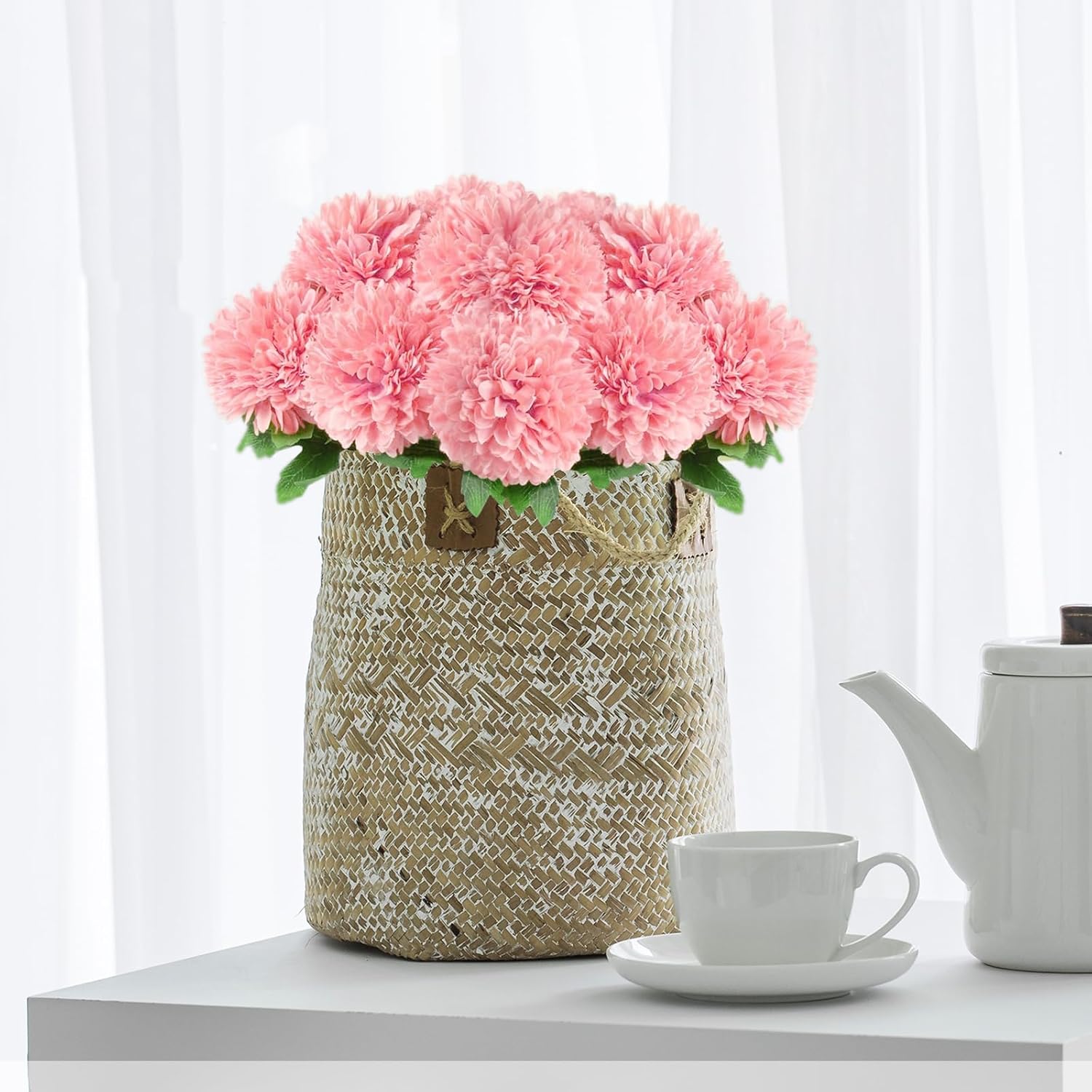 • Лесни за почистване и грижа: естествено изглеждащите копринени цветя са абсолютно безпроблемни, не увяхват, не се поливат. Ще се събере прах, ако ги оставите на едно място за много дълго време. Препоръчваме да не ги миете с ръце и да не ги миете твърде често. Прахът може да се отстрани със студен въздух от сешоара.