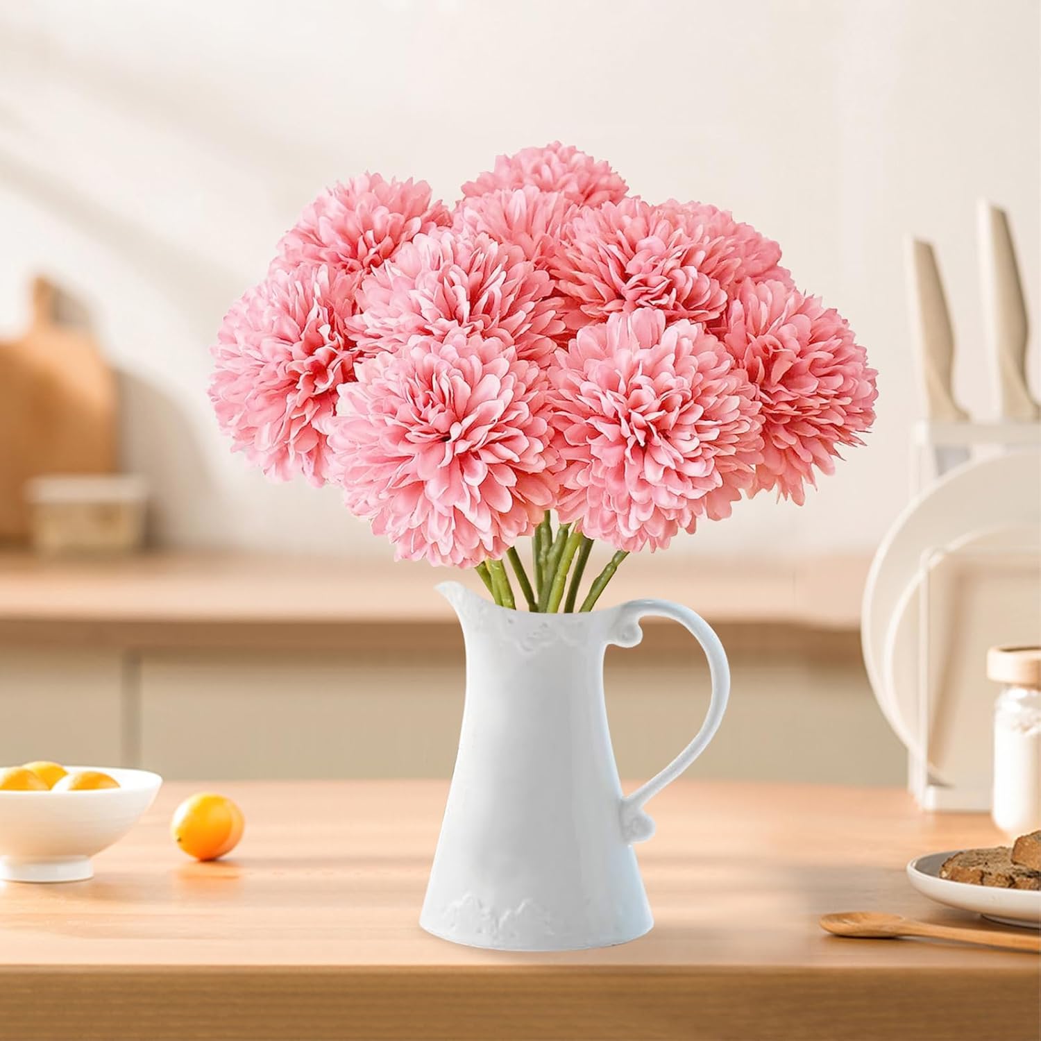 • Перфектна декорация: обичате истински детайли и сладки топки от цветя. Изкуствените цветя от хортензия могат да бъдат поставени в спалнята ви, както и в банята, кухнята, масата за хранене, страничната масичка, офиса, градината и др. Комбинирайте ги с други цветя, за да създадете романтични букети или нови „Направи си сам“ централни декорации, реалистичните топки от хризантеми са чисти и елегантни, свежи като истински.
