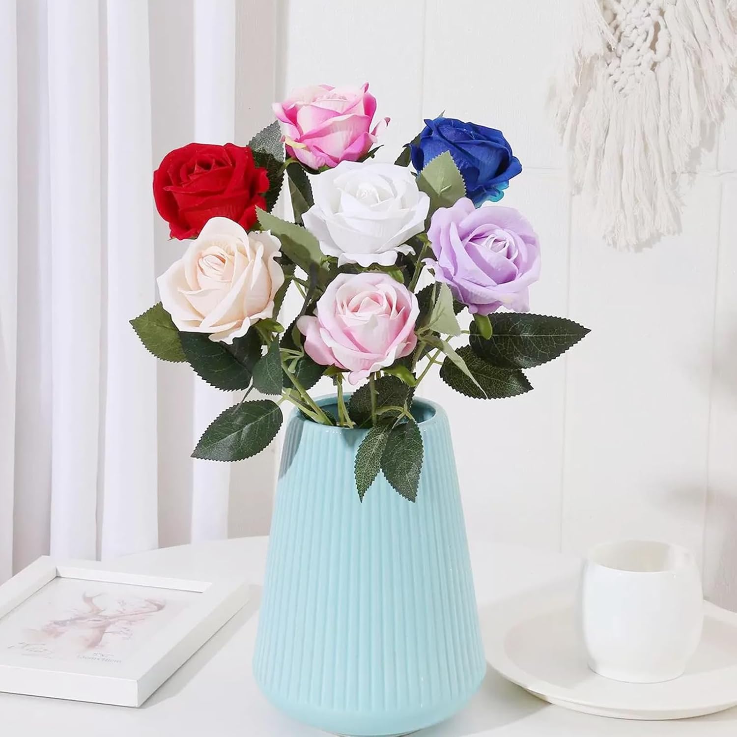 Пакет от 12 изкуствени цветя, копринени цветя, рози 51 x 7 см, изкуствени цветя, листа и регулируеми стъбла, реалистични и меки изкуствени цветя за сватбено тържество, Свети Валентин, декорация за дома (микс цветове)