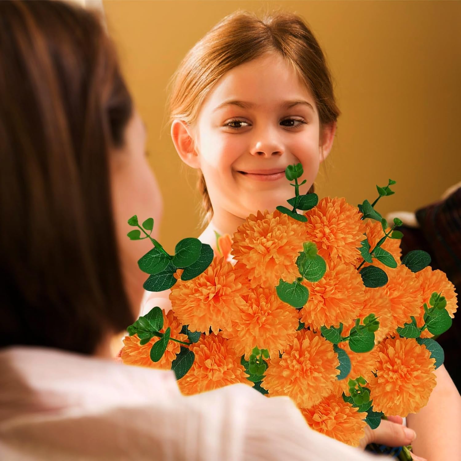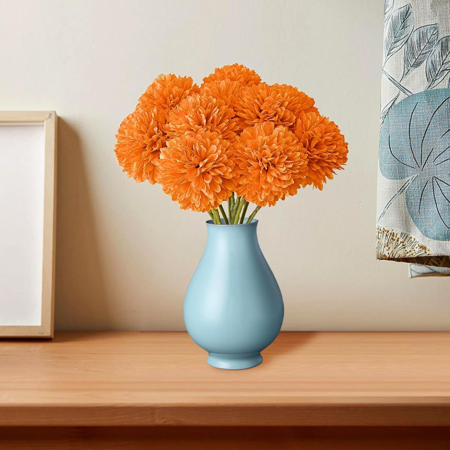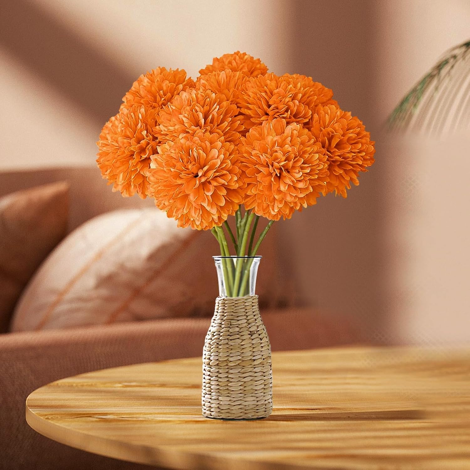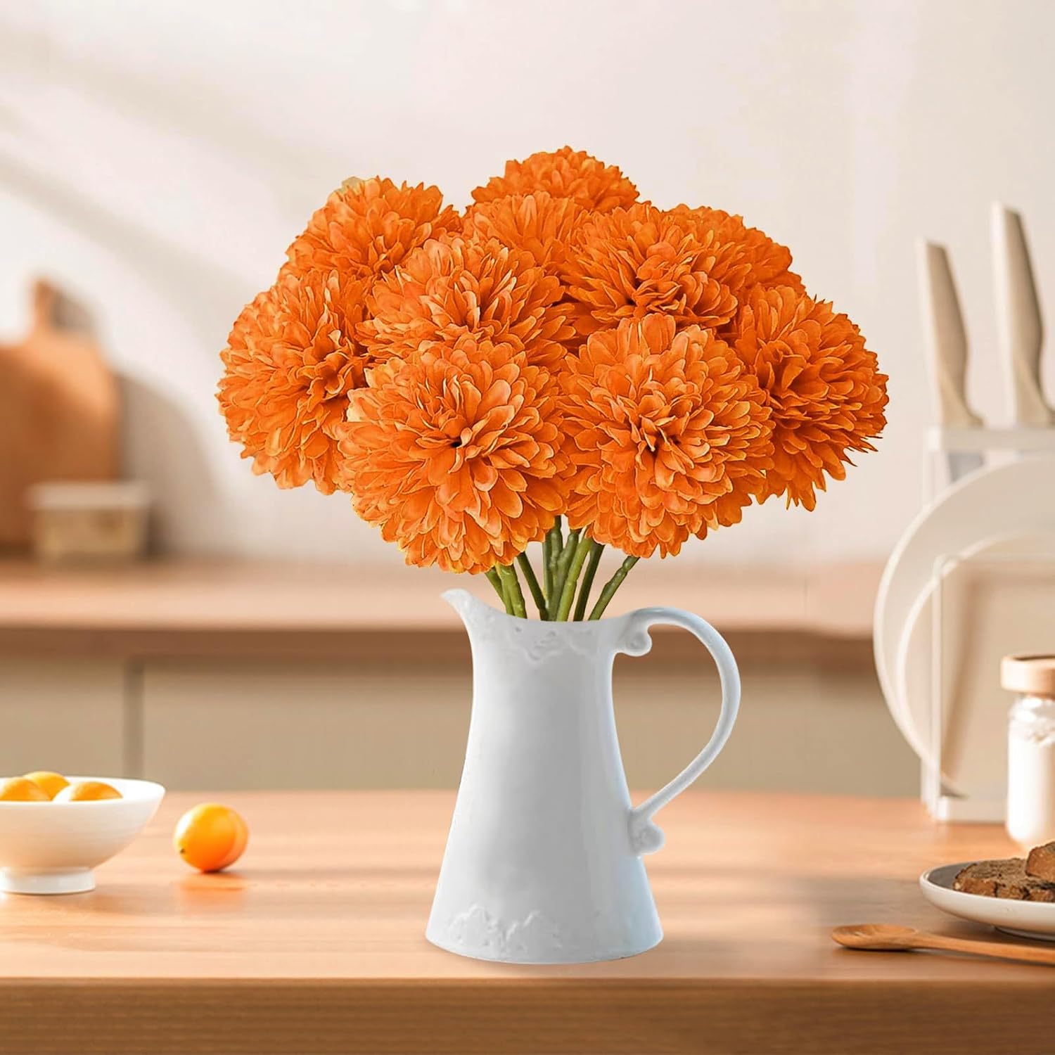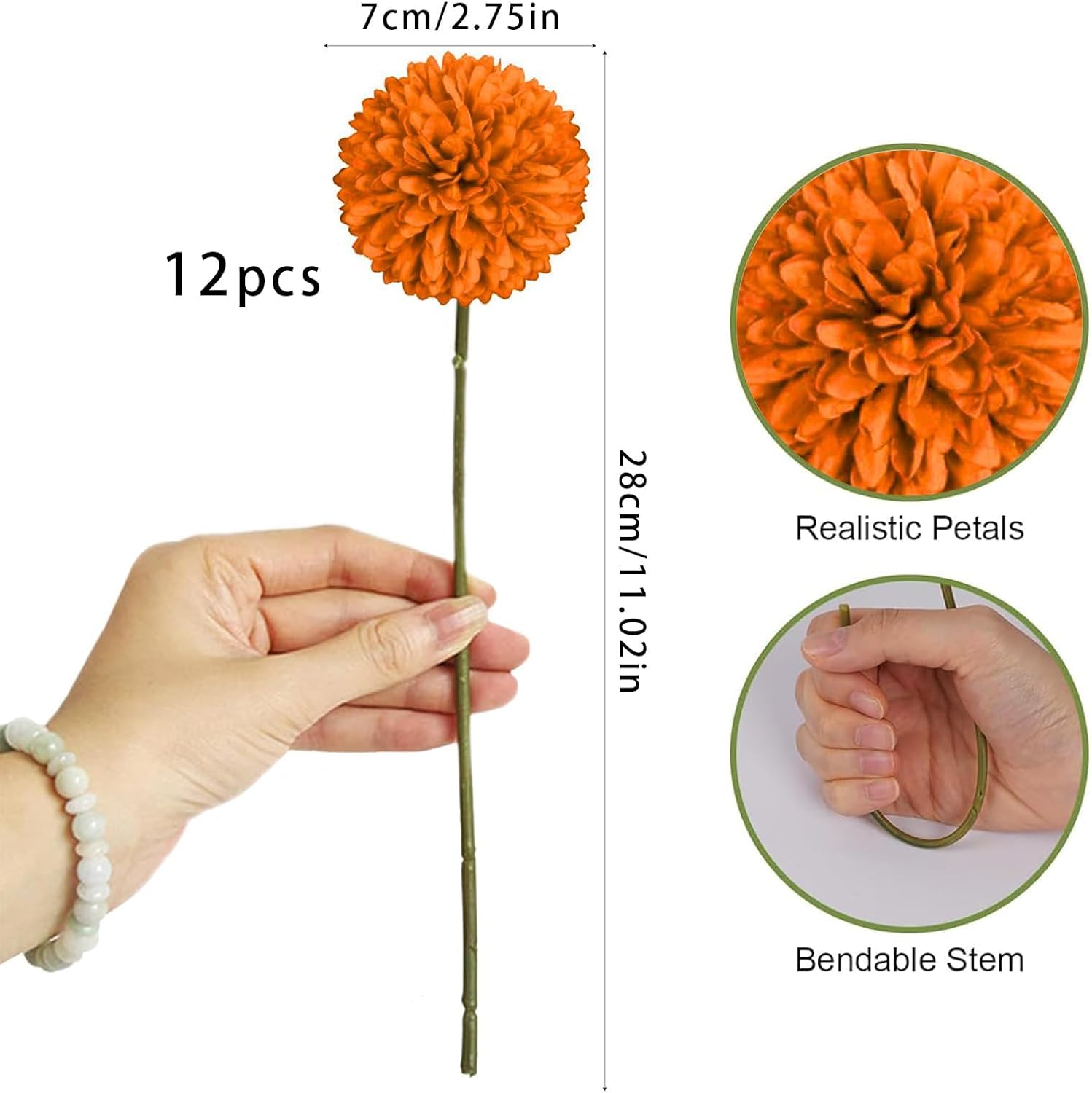 Пакет от 12 изкуствени цветове на хортензия, оранжеви изкуствени цветя, хризантема, изкуствени цветя, изкуствена топка, хризантема, копринен помпон, хризантема за дома, градинското парти, сватбената декорация.