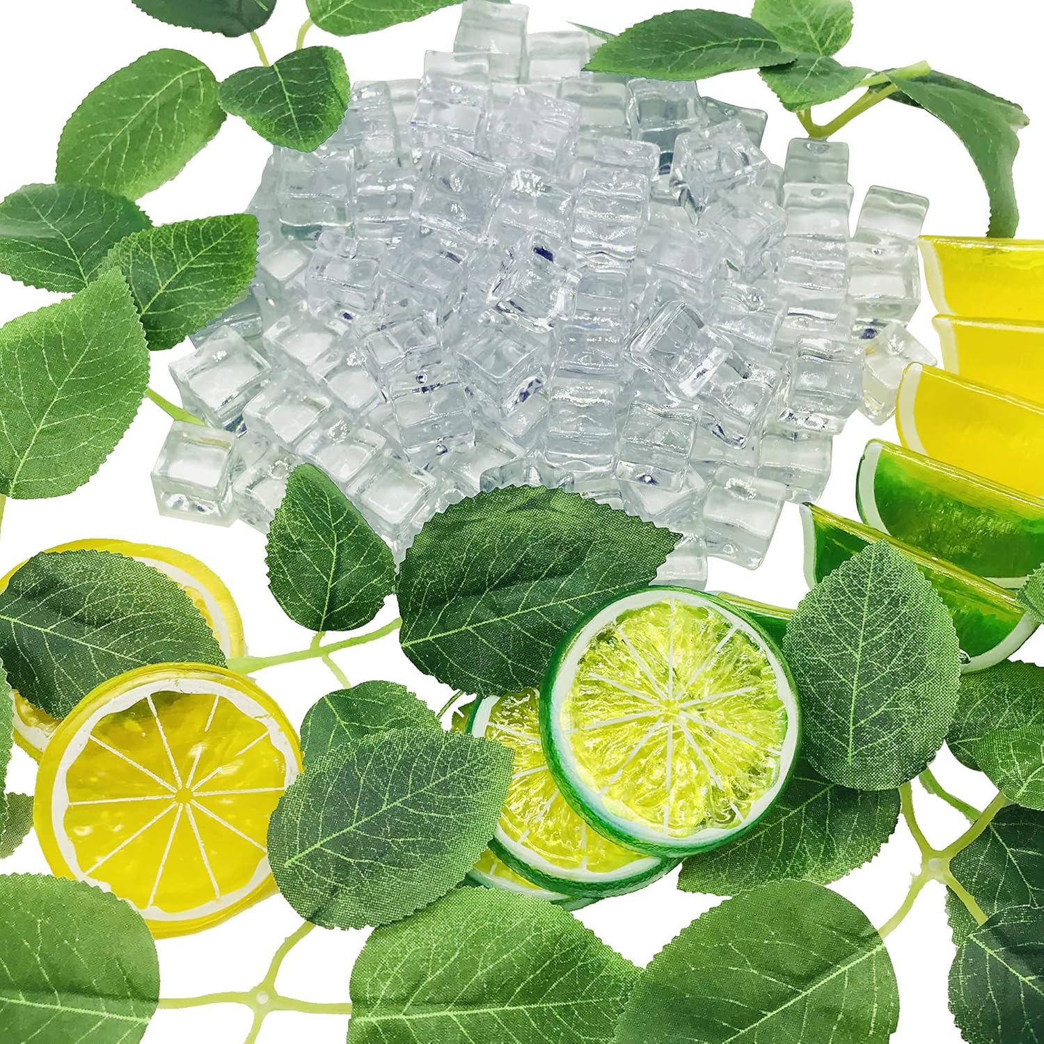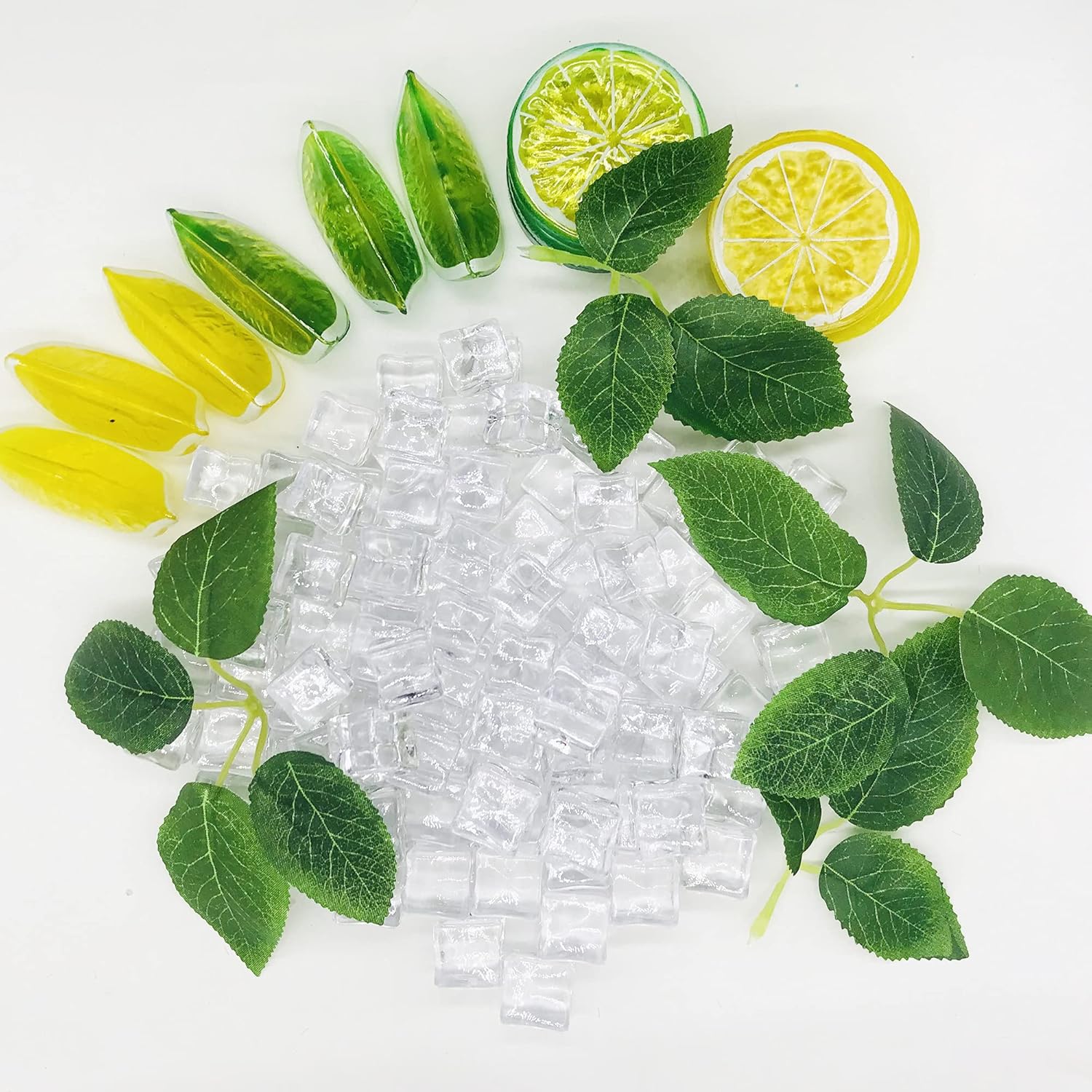 Симулирани лимони и кубчета лед вместо истински плодове, които в някои случаи се използват за представяне на плодове, за да се постигнат визуални ефекти по време на изложения. Идеални за хранителни пазари, магазини за плодове, пекарни или за употреба у дома, партита и празници.