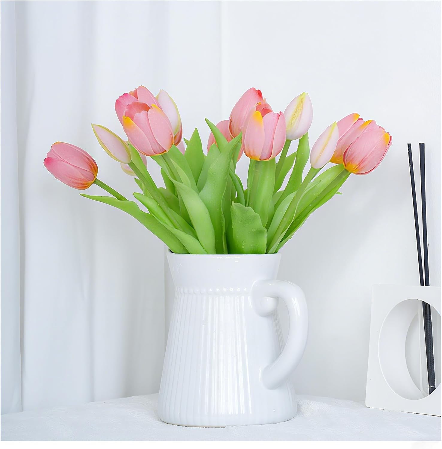 Пакет от 18 изкуствени цветя лалета, като истински, истински букети от изкуствени цветя за Деня на майката, декорация за балкон, декорация за домашна стая, сватбено тържество, хотел, офис, баня (без ваза), многоцветни