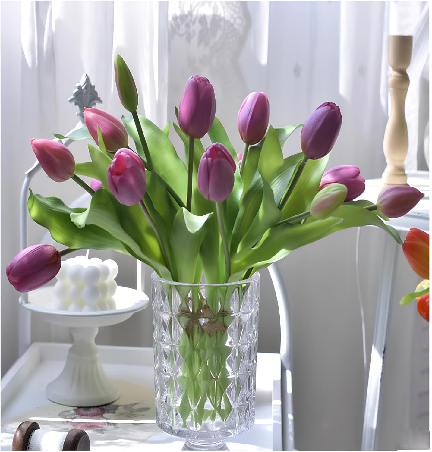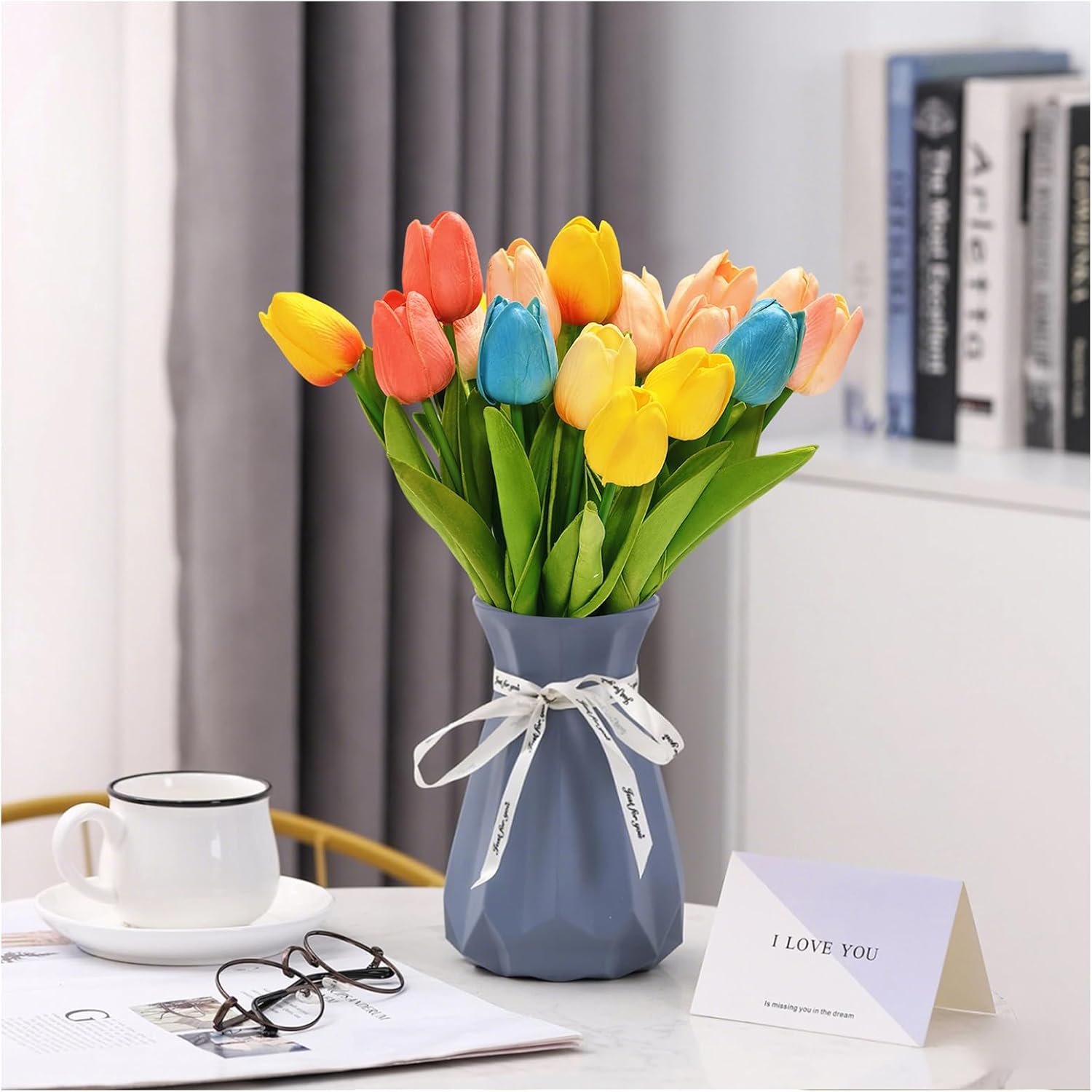 • ПЪСТРО РАЗНООБРАЗИЕ: 18 изкуствени лалета в 9 цвята (по 2 стъбла всяко) - идеални за добавяне на цвят в стаята! Всяко цвете е изработено от PU, стъбла с тел вътре, височина 34 см (цвете 5 см). Идеални за тези, които обичат разнообразието и не искат да се обвързват с един цвят. Излъчва радост и озарява всяка стая. Без ваза