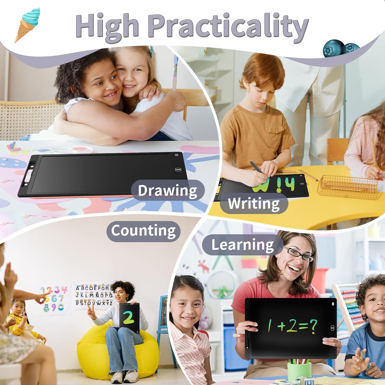 • Образователни играчки за деца: LCD таблет за рисуване с цветен дисплей, много ясно писане, осигурява достатъчно място за рисуване и графити, отприщва детското въображение и стимулира креативността им. LCD дисплеят няма синя светлина, отблясъци или радиация и предпазва детските очи от увреждане в резултат на продължителна употреба. Той е добър партньор за децата.