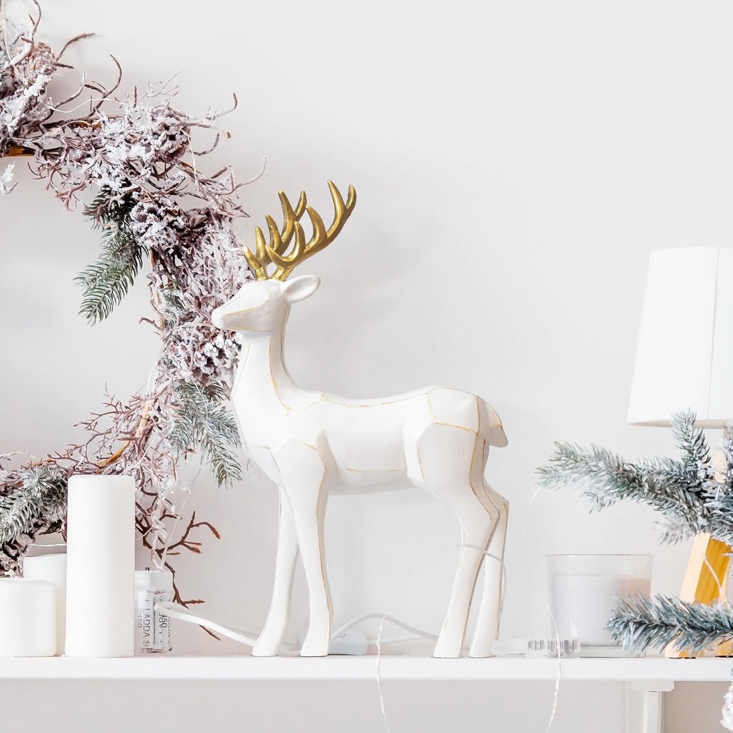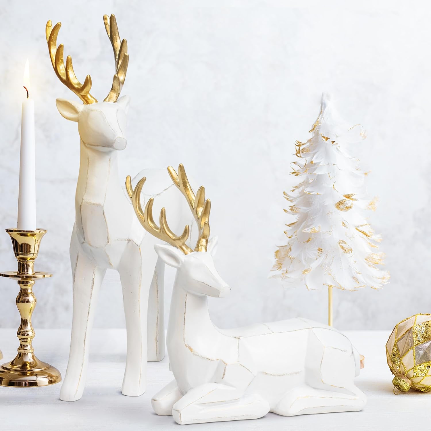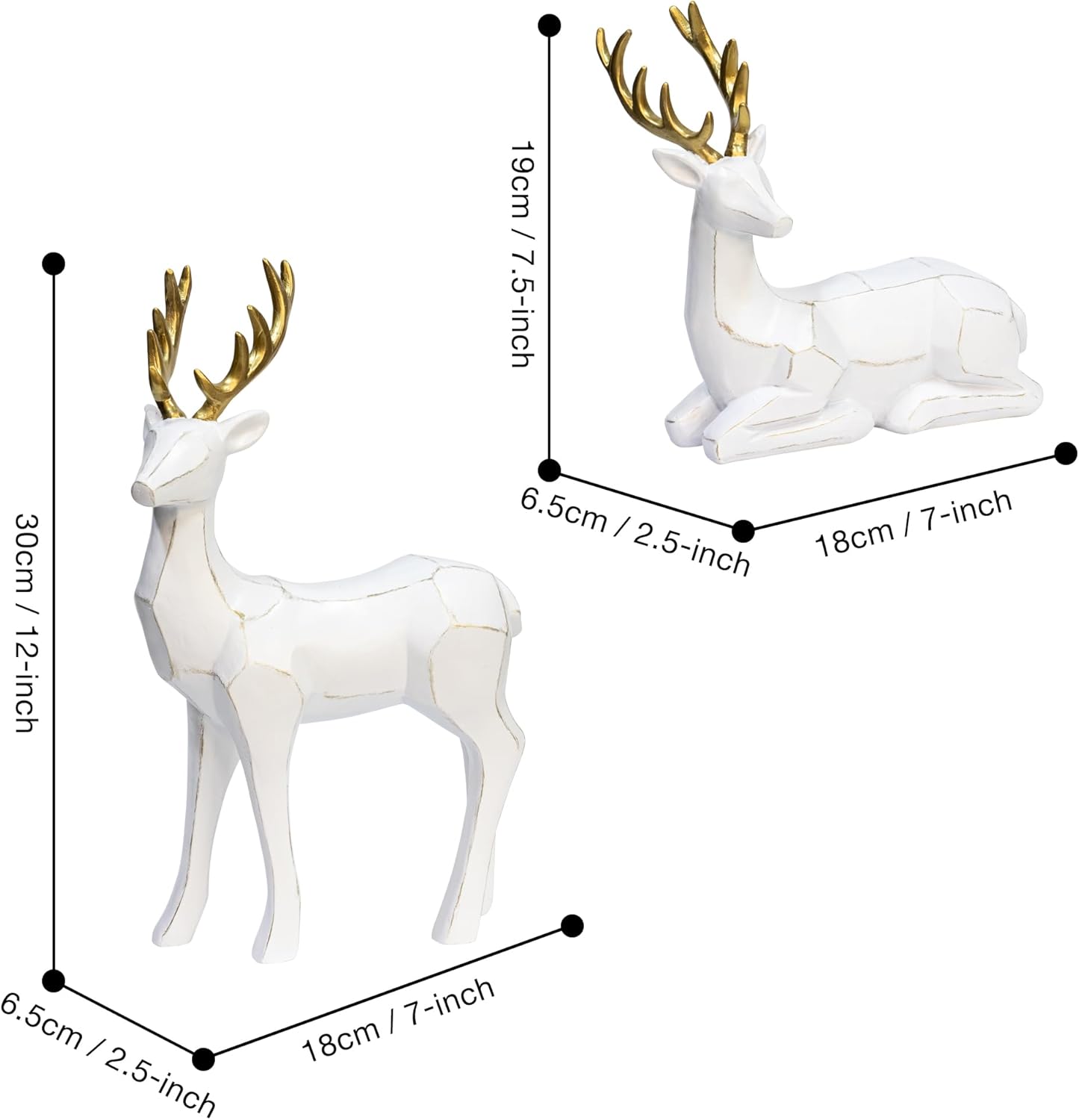 Пакет от 2 фигурки на животни от елени, скулптури, статуи, декоративна фигурка, голяма 20/30 см, фигурка на декоративен елен, коледна украса, елен, изработен от смола (бял)