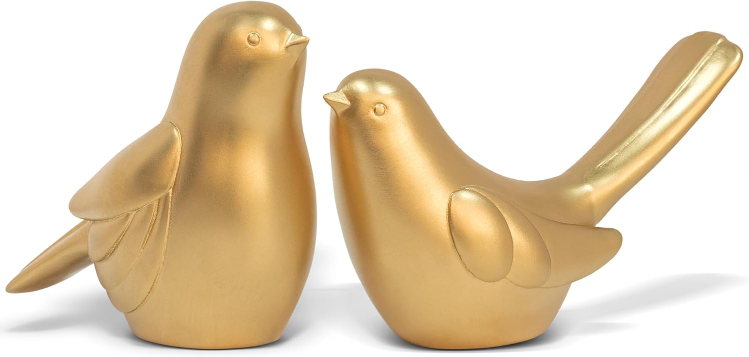 Пакет от 2 фигурки на животни от елени, скулптури, статуи, декоративна фигурка, голяма 20/30 см, фигурка на декоративен елен, коледна украса, елен, изработен от смола (златен)