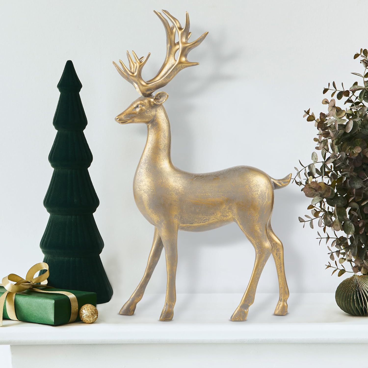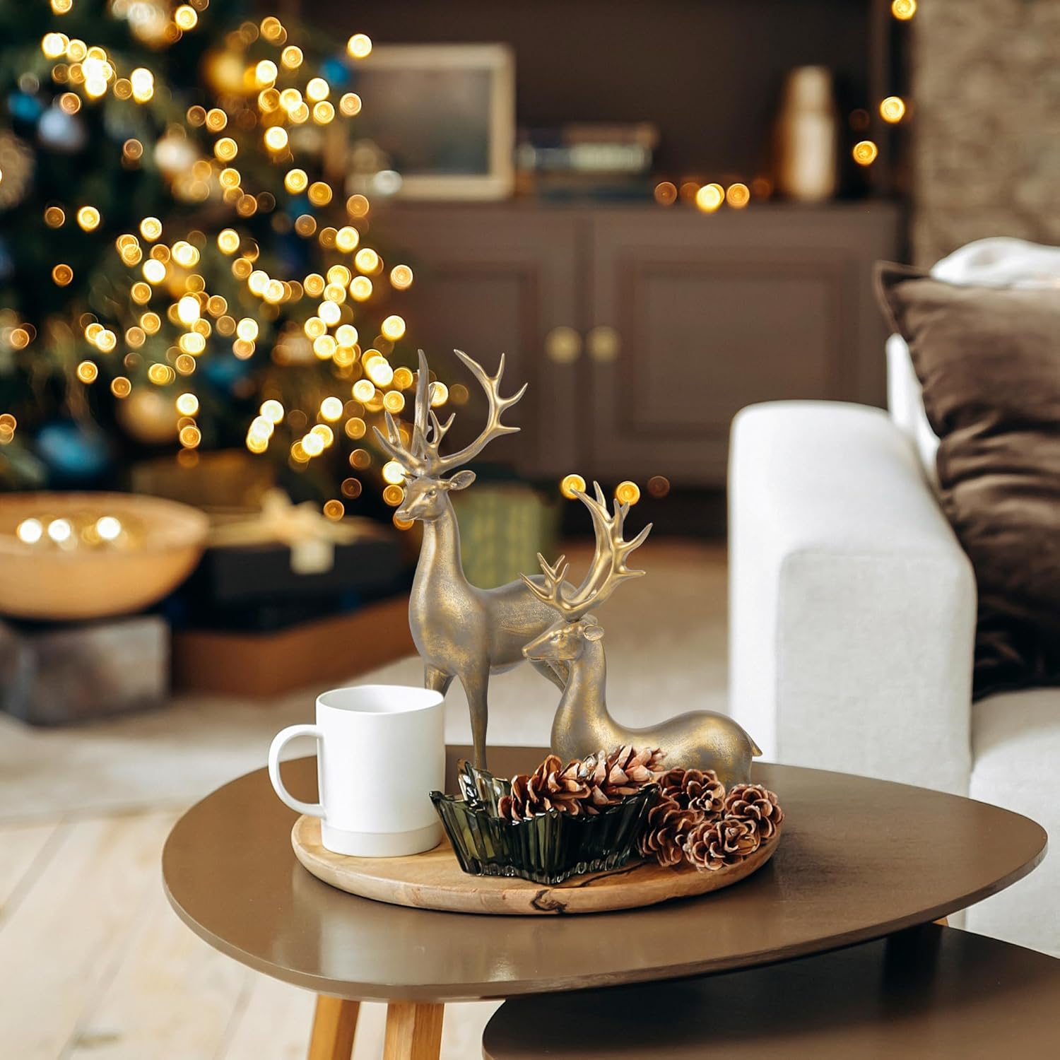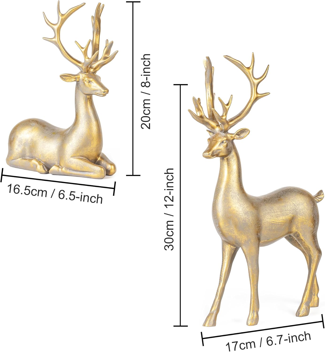 Пакет от 2 фигурки на животни от елени, скулптури, статуи, декоративна фигурка, голяма 20/30 см, фигурка на декоративен елен, коледна украса, елен, изработен от смола (златен)