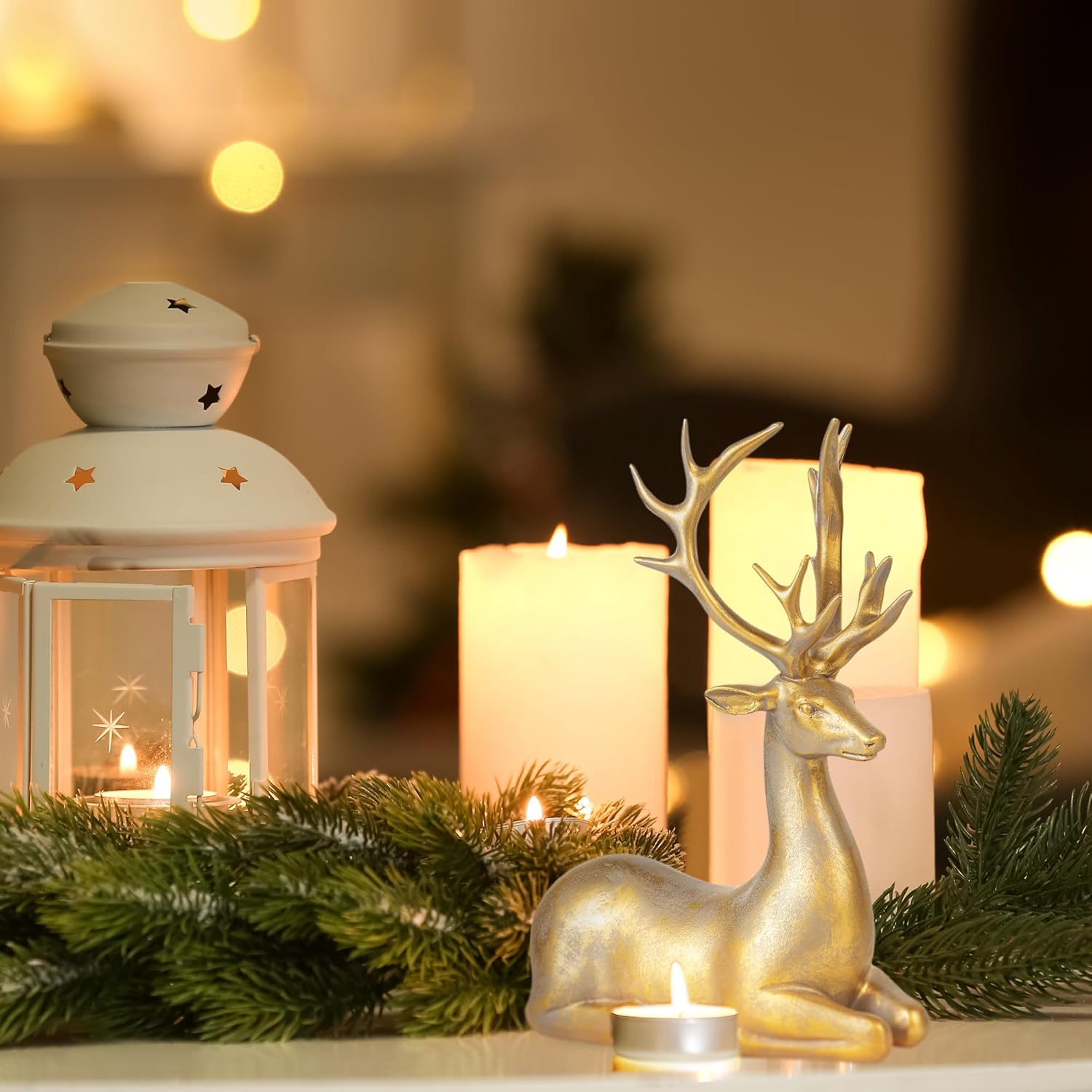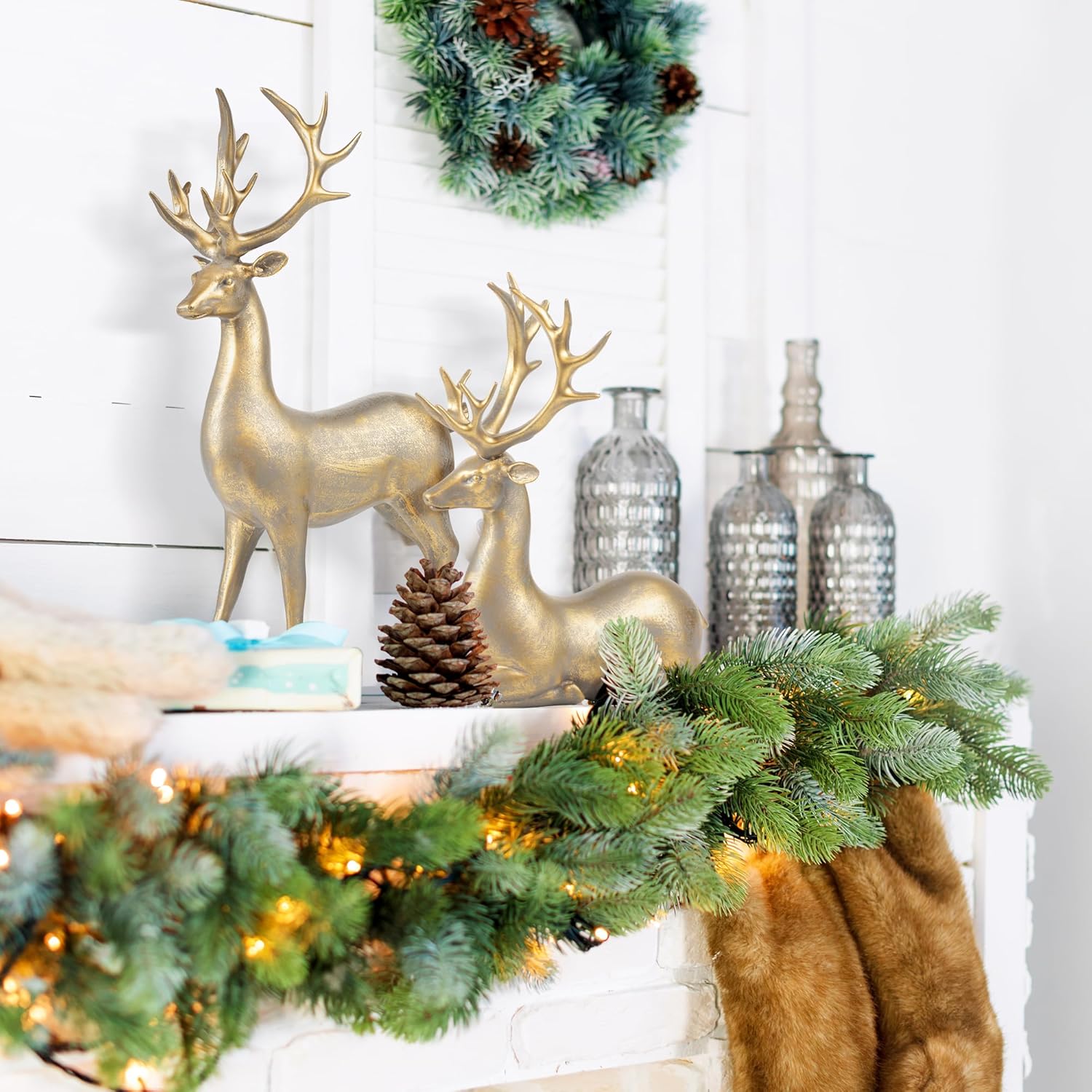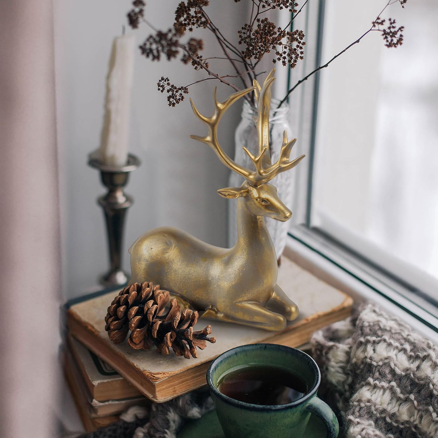 Пакет от 2 фигурки на животни от елени, скулптури, статуи, декоративна фигурка, голяма 20/30 см, фигурка на декоративен елен, коледна украса, елен, изработен от смола (златен)