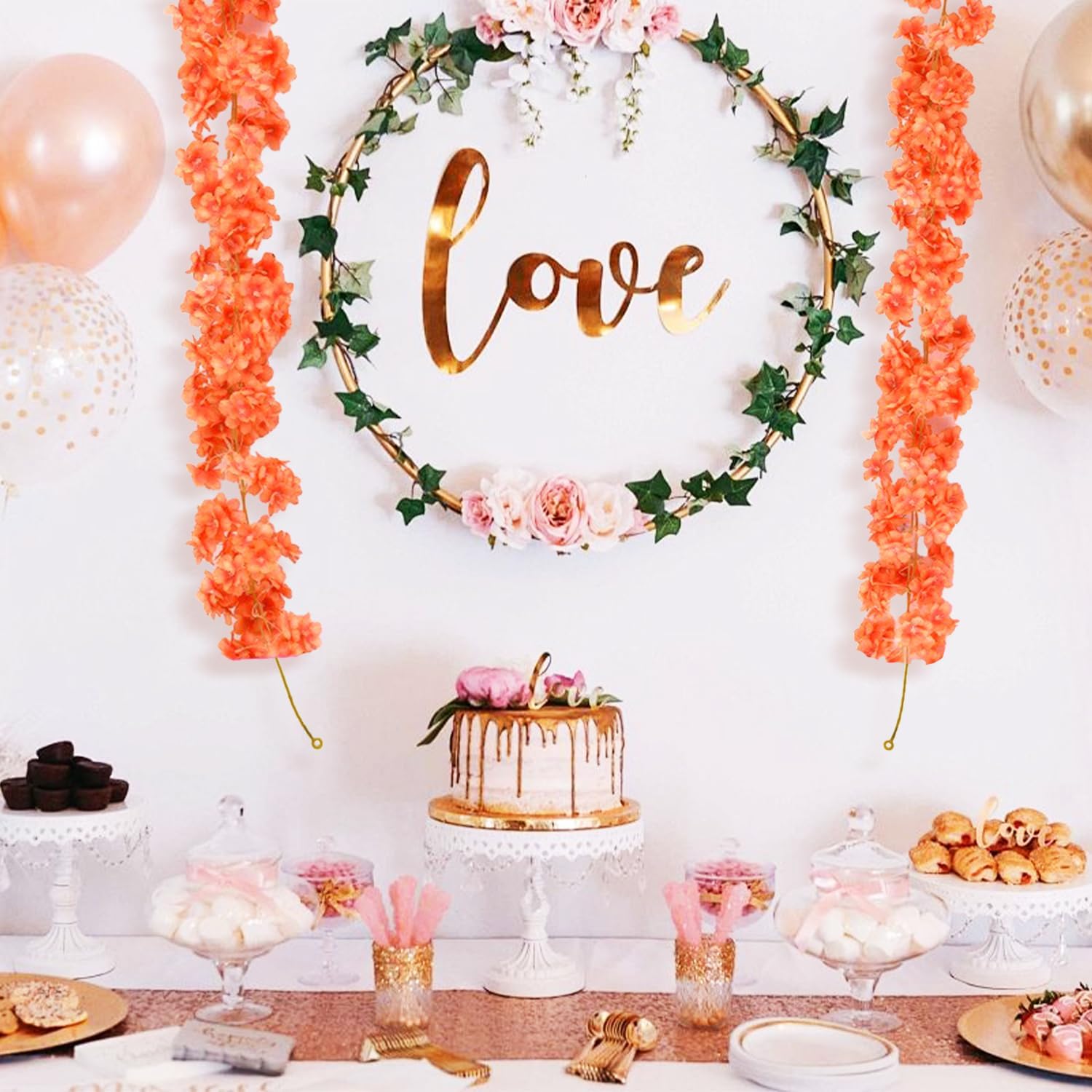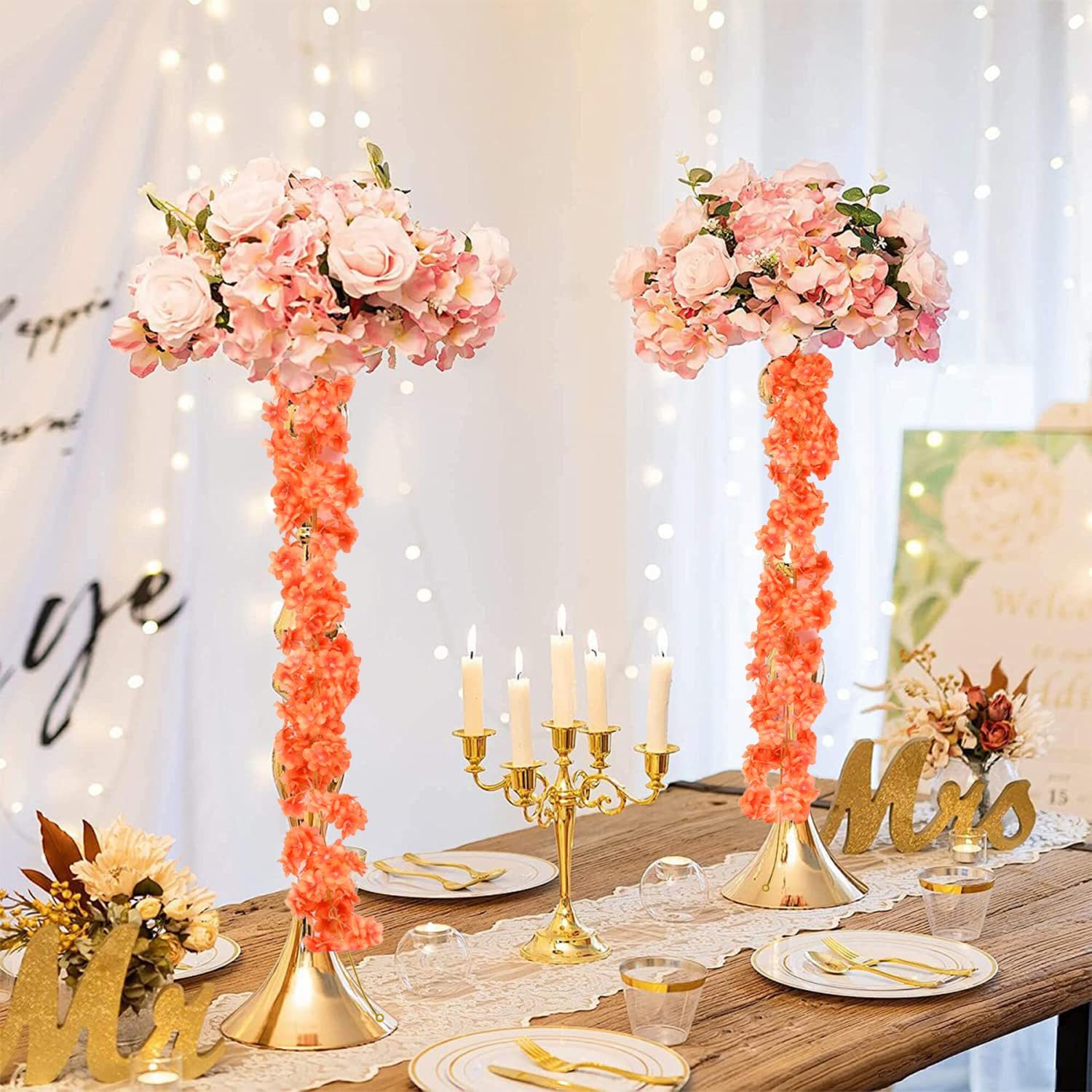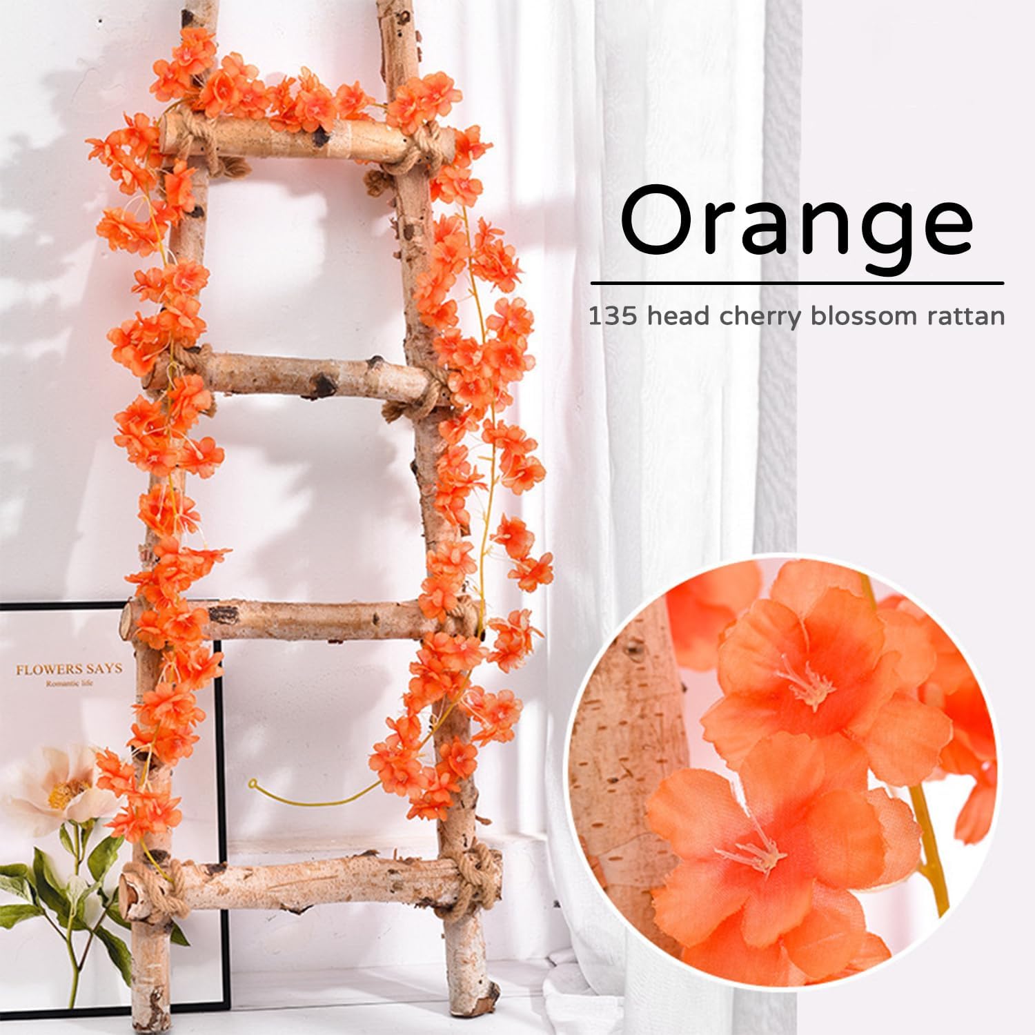 Гирлянда от изкуствен черешов цвят, изработена от изкуствена коприна, с естествен вид, широко използвана, издръжлива и може да се пере.