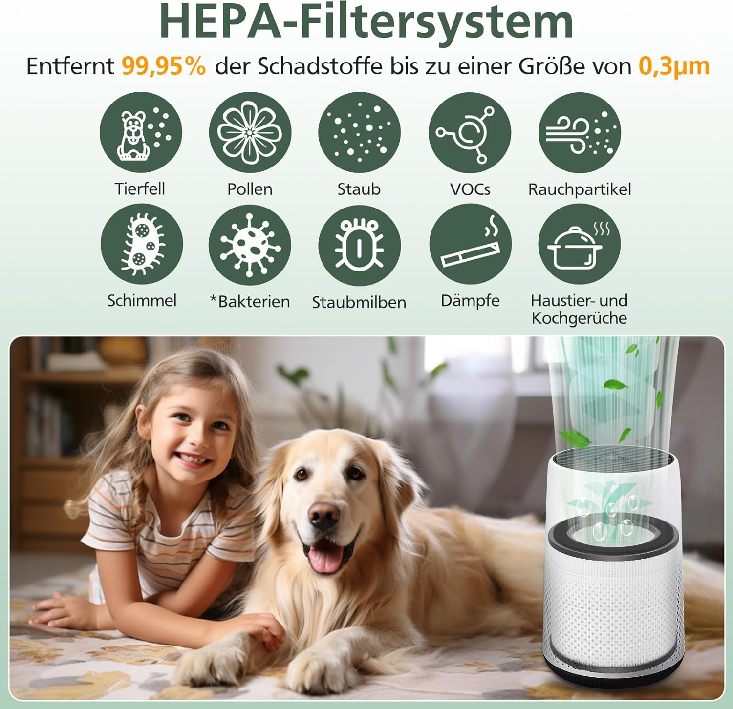 • 99,97% ефективно филтриране: резервен филтър за серия Philips 800 може да премахне 99,97% от частиците във въздуха с размер до 0,3 микрона, включително косми от домашни любимци, акари, спори на мухъл, полени и други. Премахва замърсителите и освежава въздуха. Идеален за страдащи от алергии, собственици на домашни любимци и пушачи.