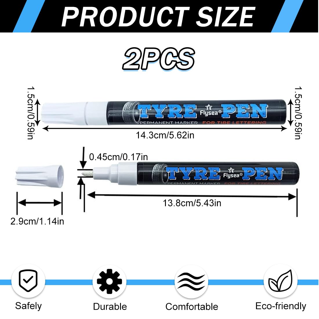 ВИСОК КАПАЦИТЕТ Съдържа два бели маркера за автомобилни гуми, всеки с достатъчно мастило за дълготрайна употреба. Тези маркери са вашият идеален избор за продължителна работа по маркиране.