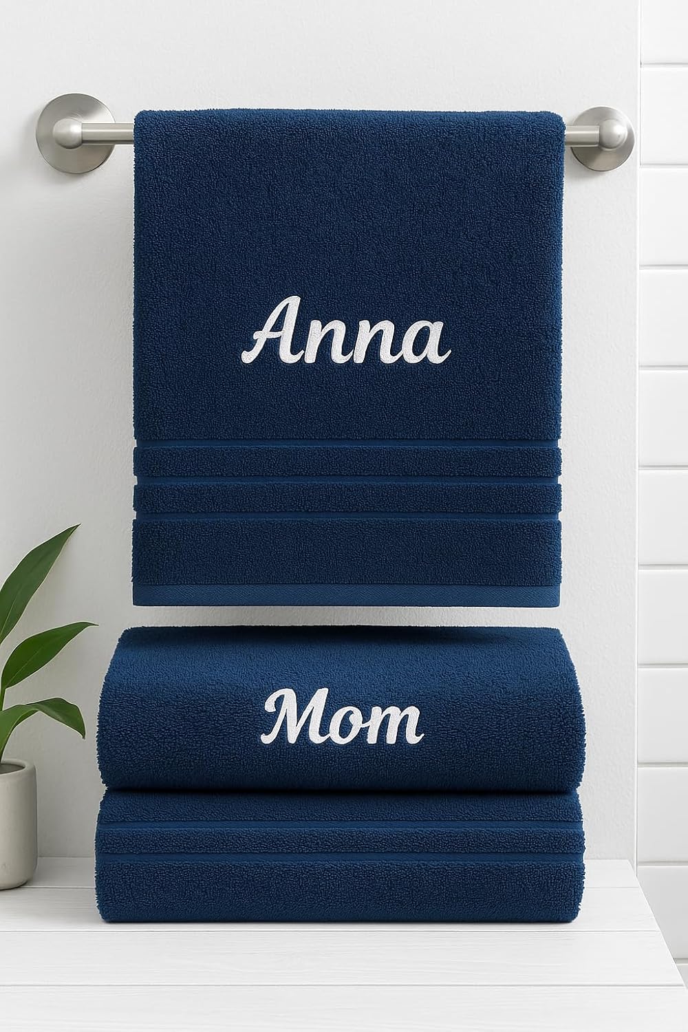 Персонализирани бродирани качествени кърпи - перфектен подарък с личен щрих. Как да поръчате: изберете цвят, кликнете върху „персонализирай сега“. Изберете цвят на името и въведете желаното име с до 15 букви в полето. Добави в количката. Висококачествена бродерия - изглежда страхотно и е завинаги. Материя: мек 100% памук. Размер: пакетът съдържа две кърпи: хавлия за баня (140 x 70 см) и хавлия за ръце (50 x 100 см)