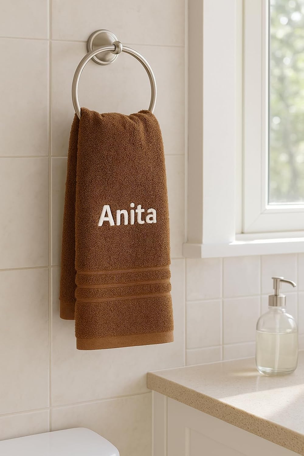 Персонализирани бродирани качествени кърпи - перфектен подарък с личен щрих. Как да поръчате: изберете цвят, кликнете върху „персонализирай сега“. Изберете цвят на името и въведете желаното име с до 15 букви в полето. Добави в количката. Висококачествена бродерия - изглежда страхотно и е завинаги. Материя: мек 100% памук. Размер: пакетът съдържа две кърпи: хавлия за баня (140 x 70 см) и хавлия за ръце (50 x 100 см)