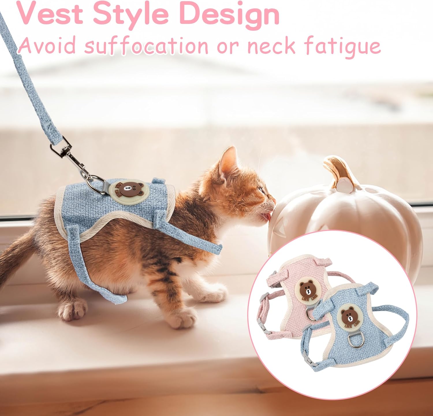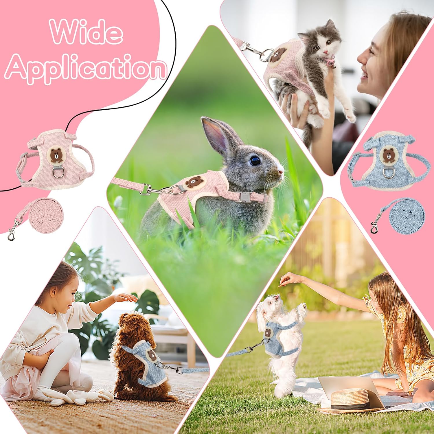 Пакет от 2 повода за зайци - Регулируем 120 см мек повод - Аксесоари и нагръдник за зайци, котки, малки кучета и други малки домашни любимци (син и розов)