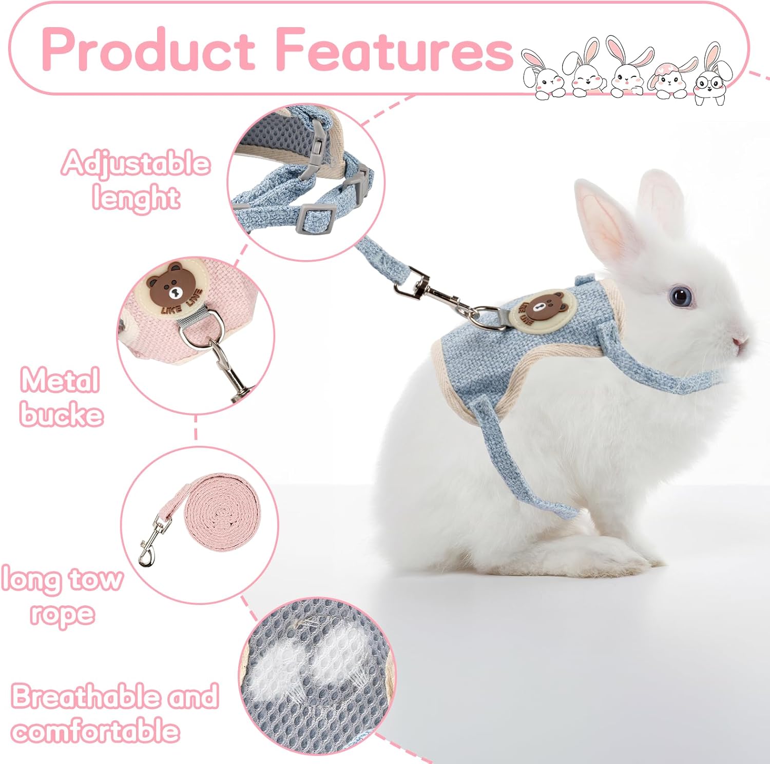 • Висококачествени материали: регулируемата каишка за заек е изработена от мека и дишаща мрежа и памук. За да се гарантира комфортът на заека при носене, и не е задушна, подходяща за всички сезони. Висококачественото плетено памучно въже е здраво и устойчиво на износване и не души ръцете ви.