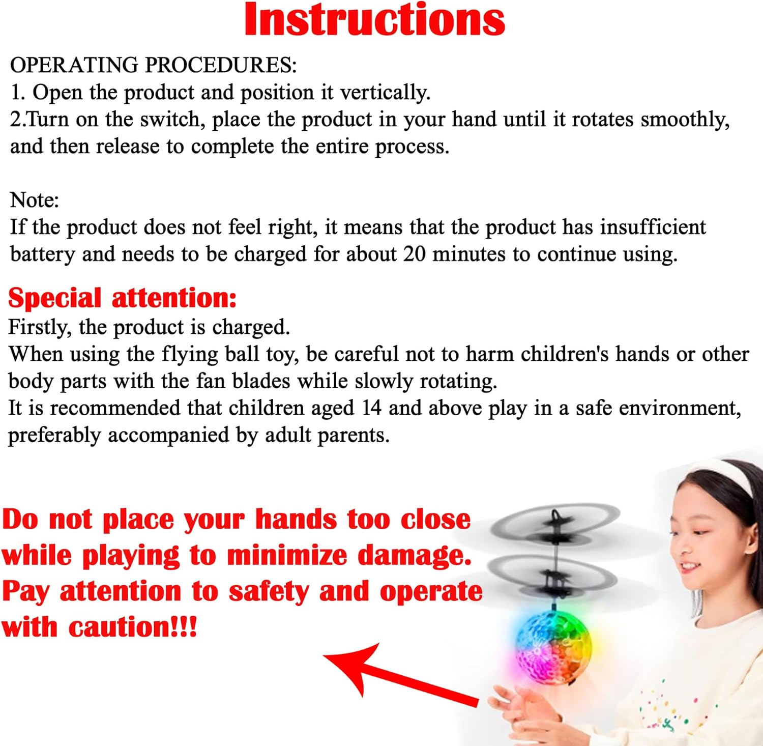 • Най-добрият подарък за деца: RC хеликоптерната топка е вашият първи избор като летяща играчка. Перфектен подарък за чорап, рожден ден, Великден или Коледа за деца на възраст над 10 години. Внимание: Моля, не забравяйте, че лицето и очите не трябва да се доближават твърде много, за да се избегнат надрасквания.