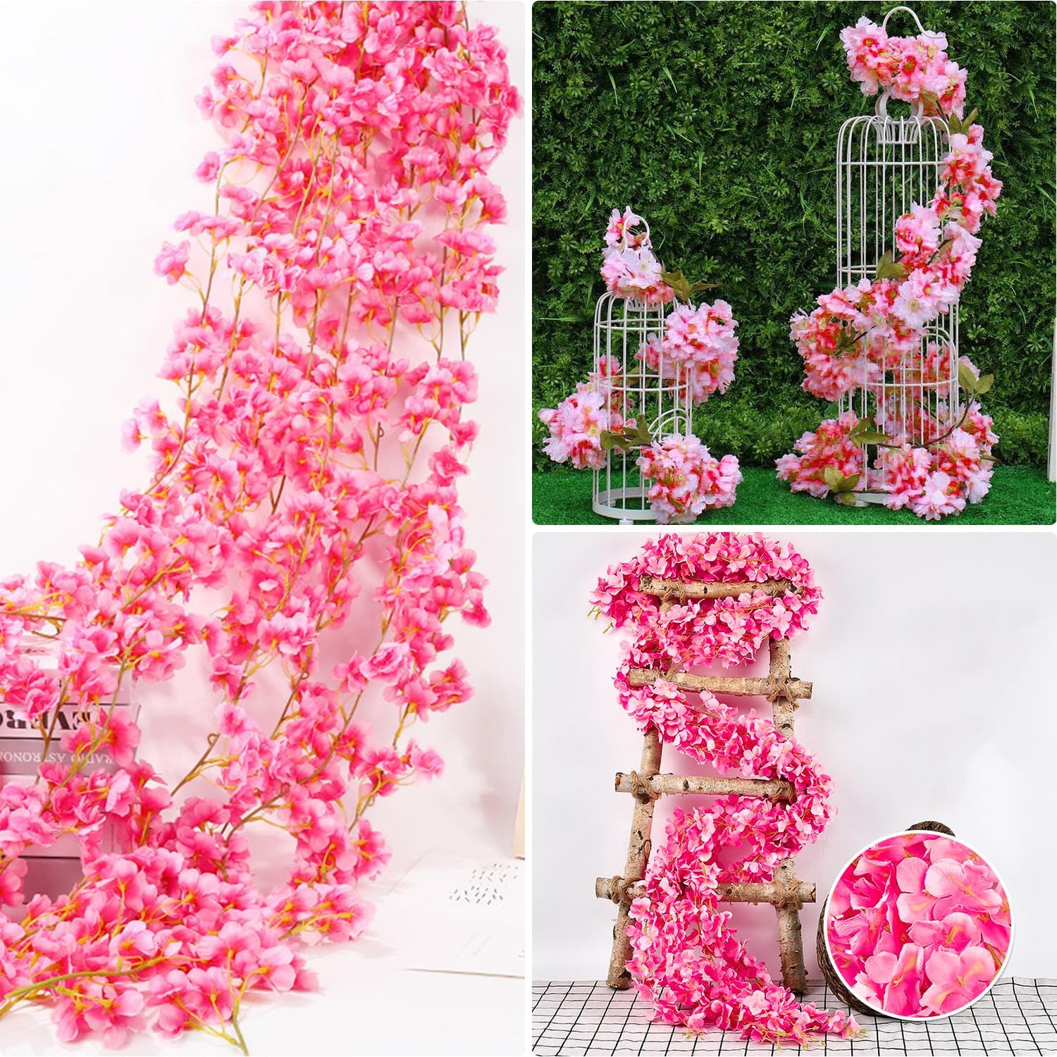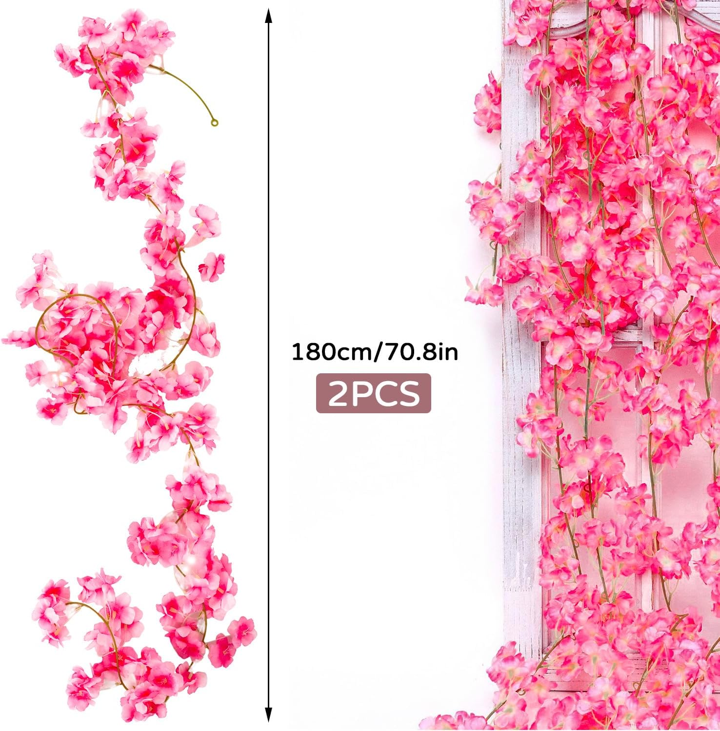 Гирлянда от изкуствен черешов цвят, изработена от изкуствена коприна, с естествен вид, широко използвана, издръжлива и може да се пере.