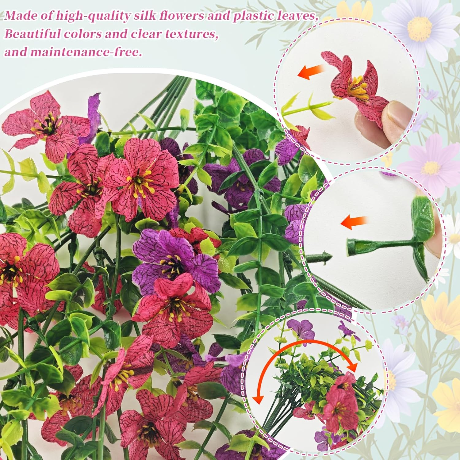 Характеристики: Висока симулация, не е лесно да избледнее или да увяхне, няма риск от алергия към полени