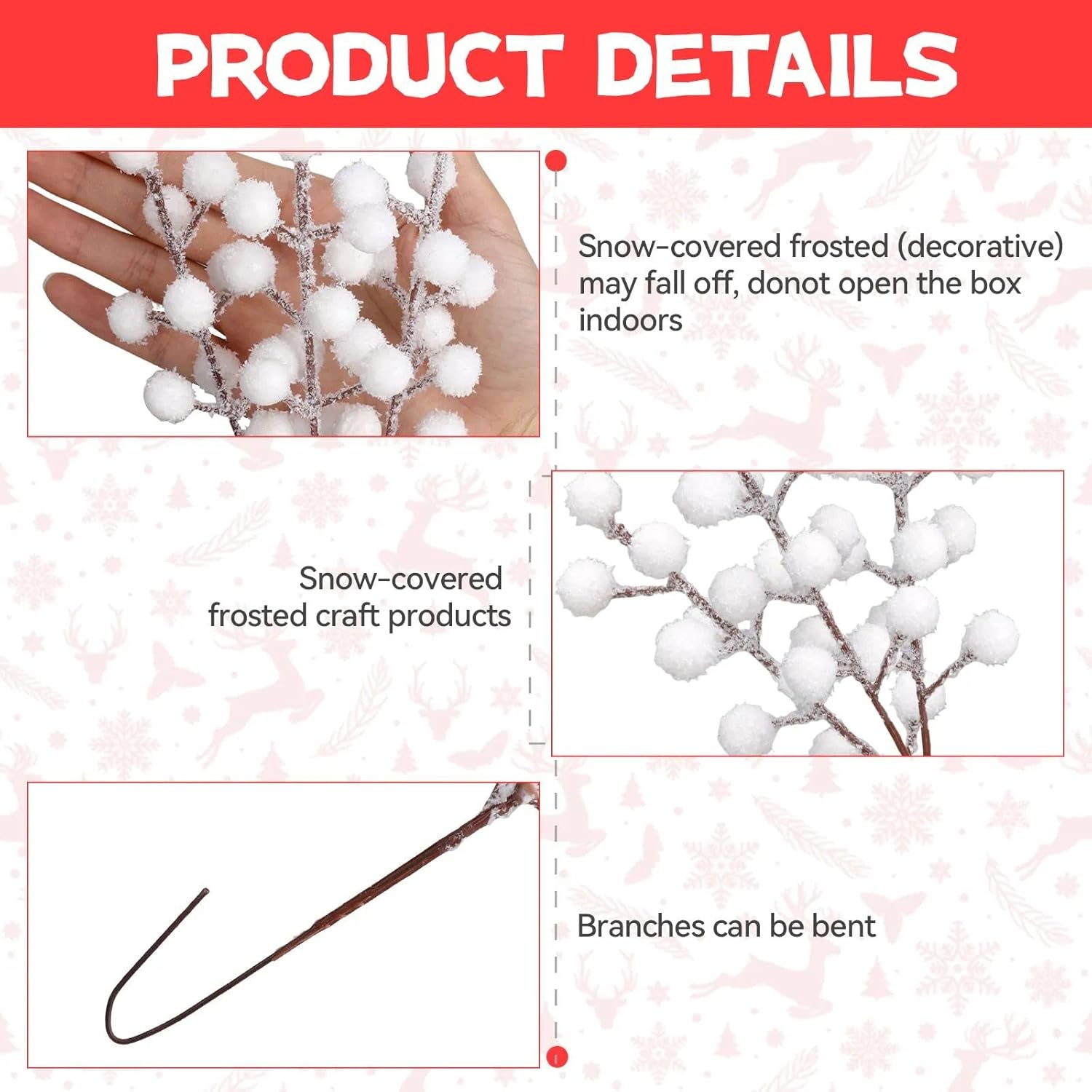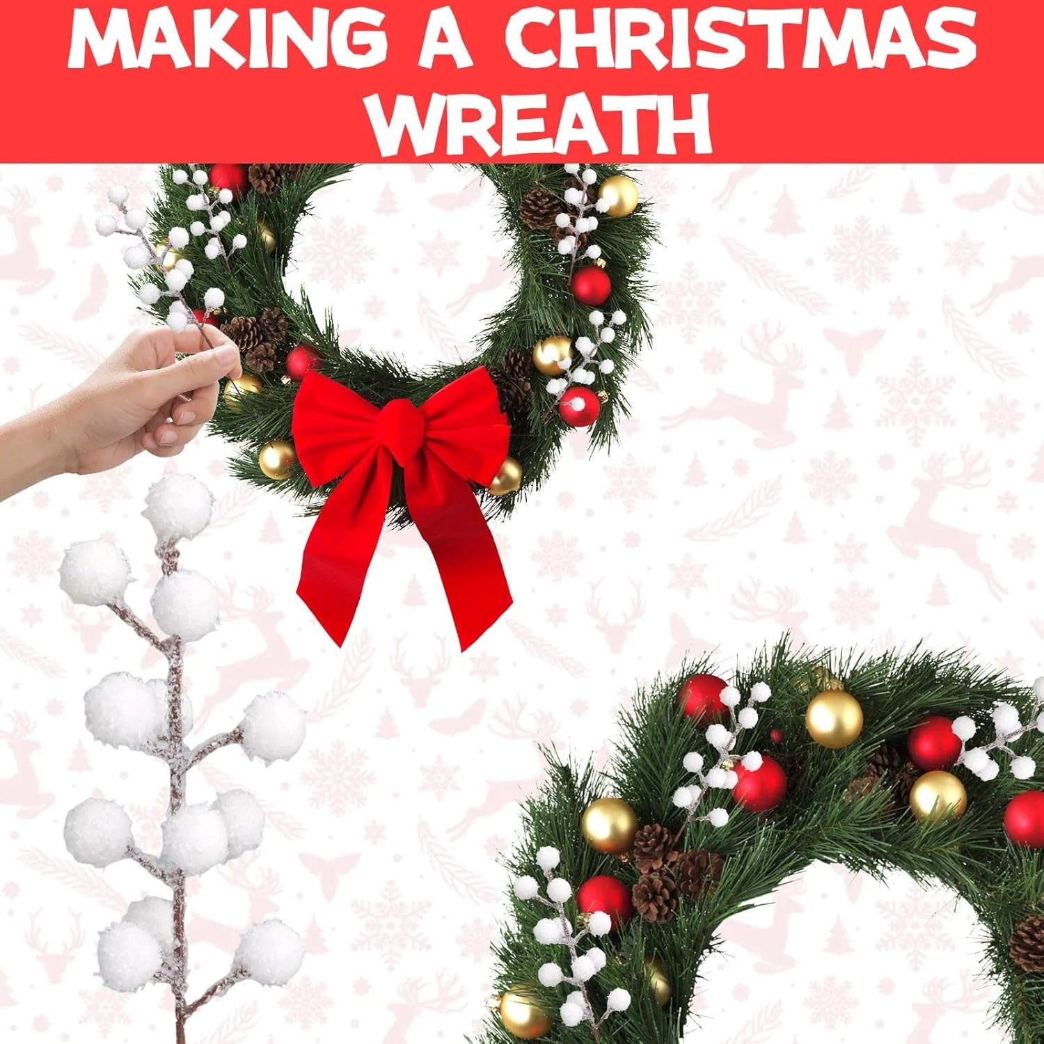 Универсална употреба: бялата коледна украса е подходяща за аранжиране на маса, венци за врати или опаковане на подаръци. Идеална за сватби и зимни партита.