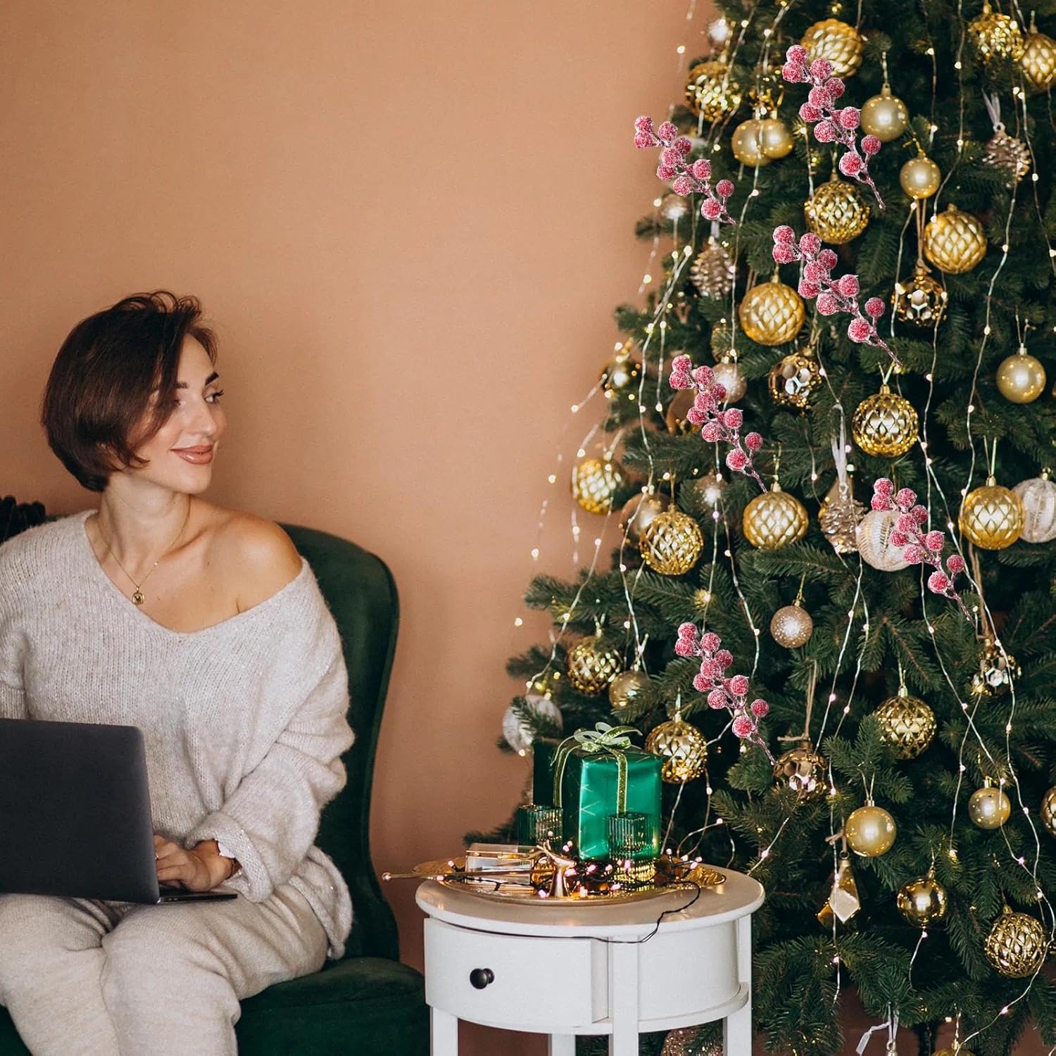 Ледена елегантност за празнични пространства! 20 бели блестящи клонки с горски плодове създават вълшебен зимен пейзаж във вашия дом.