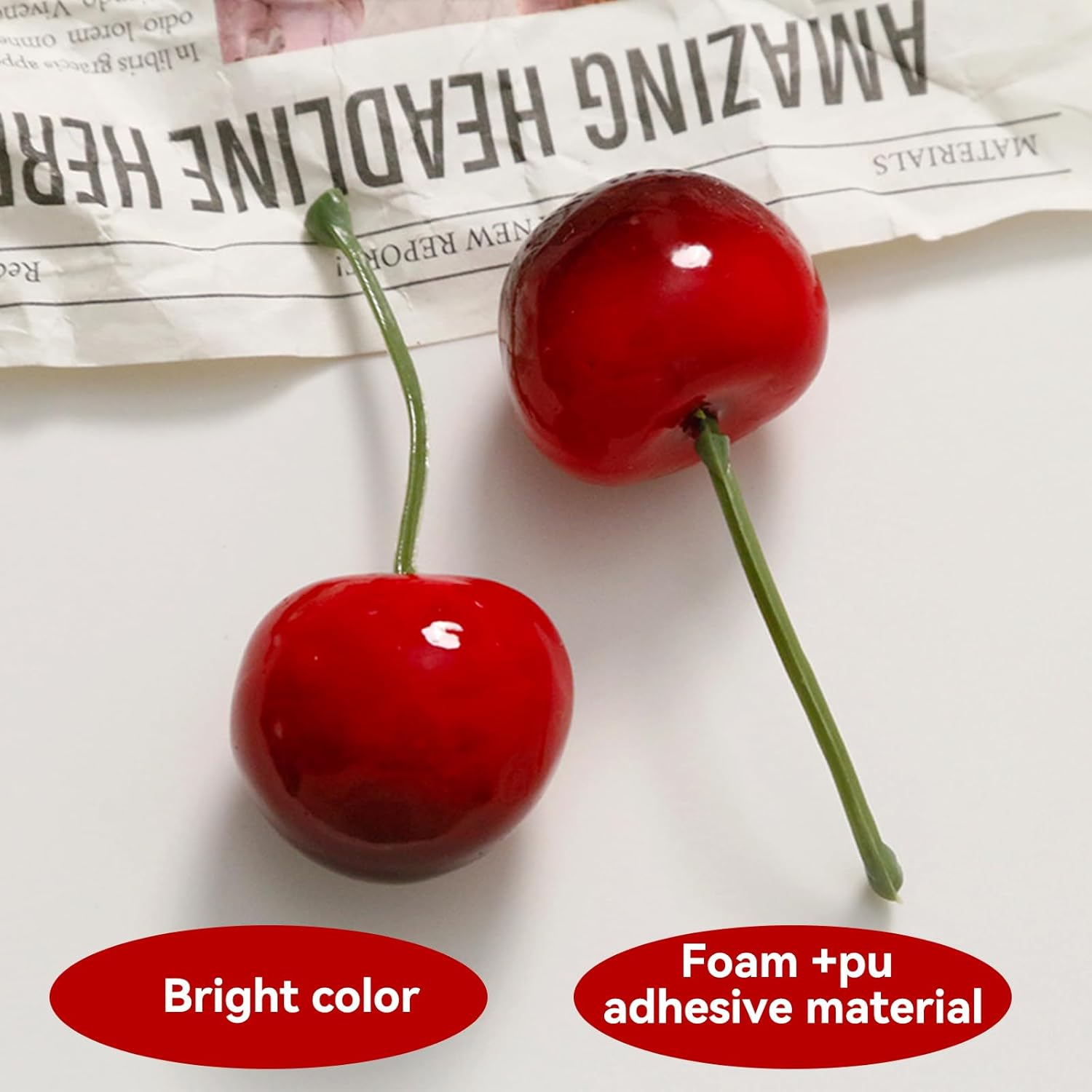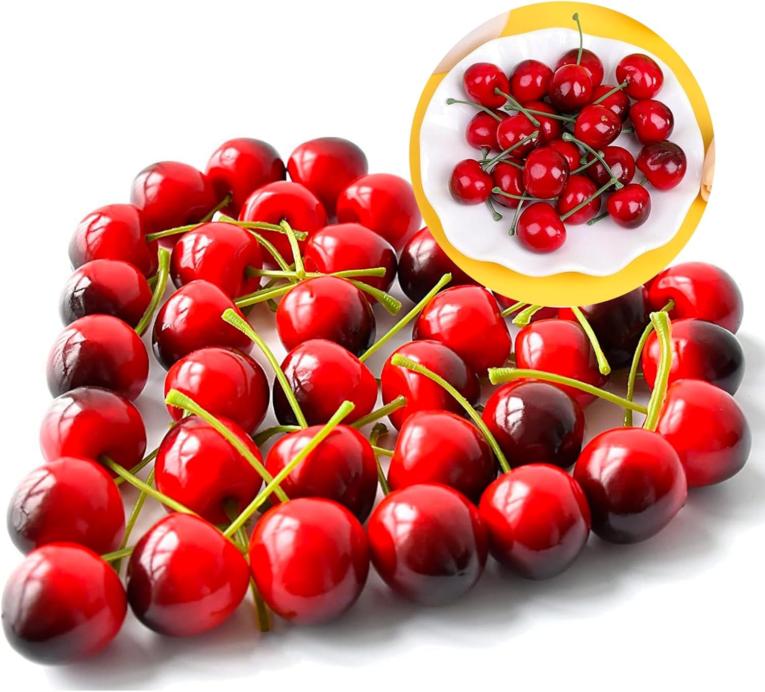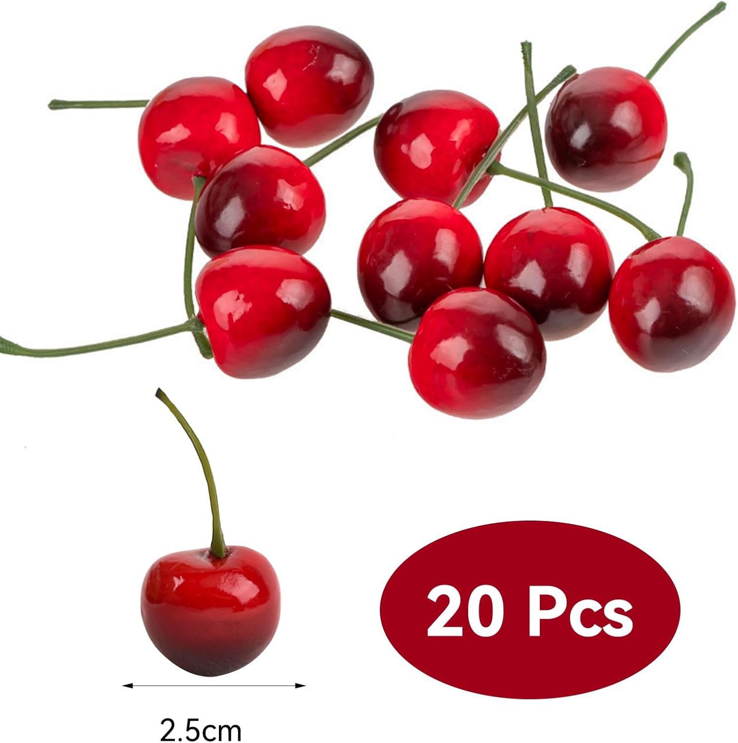 Whether for home, events or creative photo projects, these artificial cherries are versatile and a stylish addition to various decorating ideas. They are the perfect accessory for fruit arrangements, party decorations and creative art projects and provide an appealing visual impact in any setting.