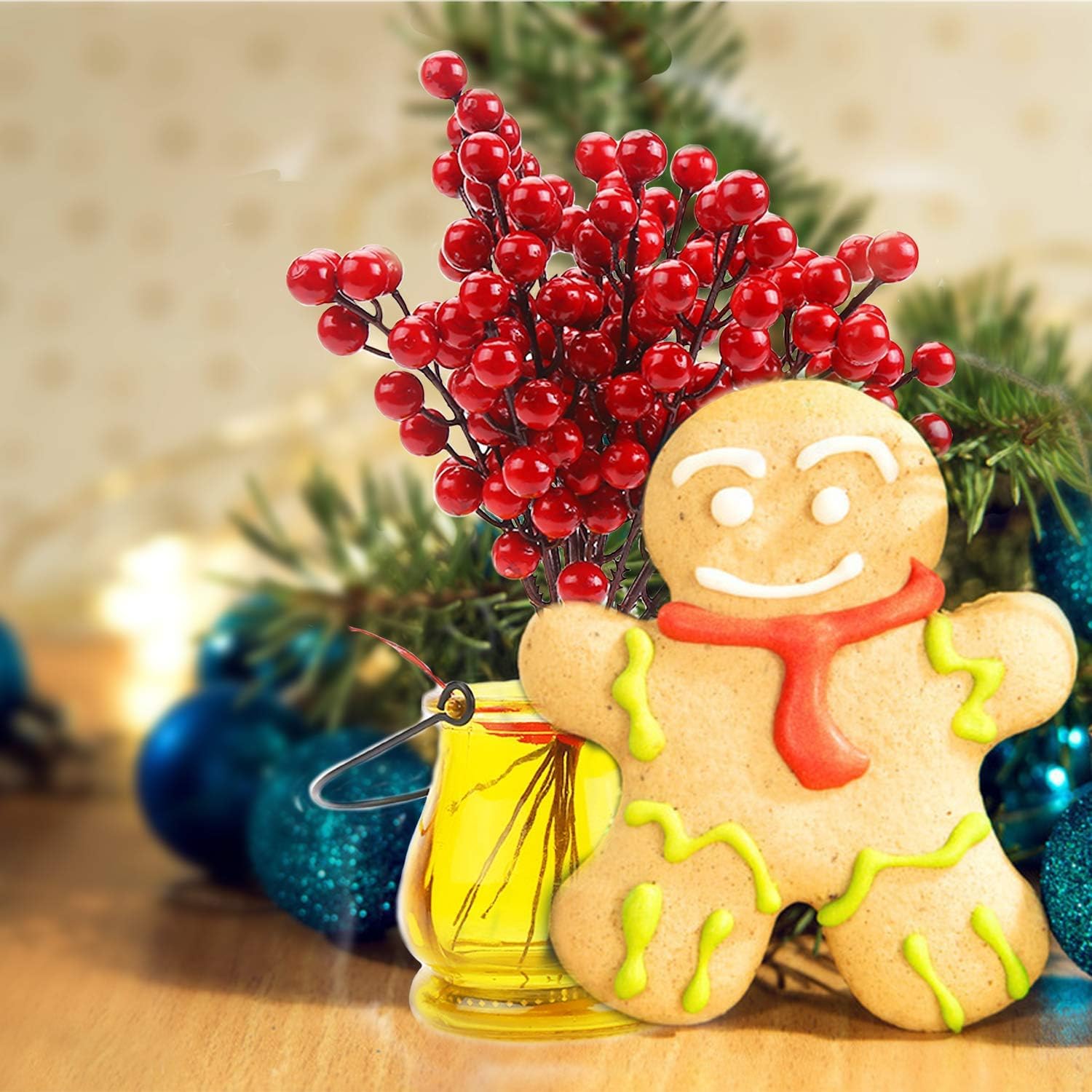 • Силен блясък: брането на горски плодове е равномерно поръсено с ярък прах, добавете малко повече червени акценти към вашата коледна елха, дължината на всяко зрънце е около 7,8 инча / 20 см