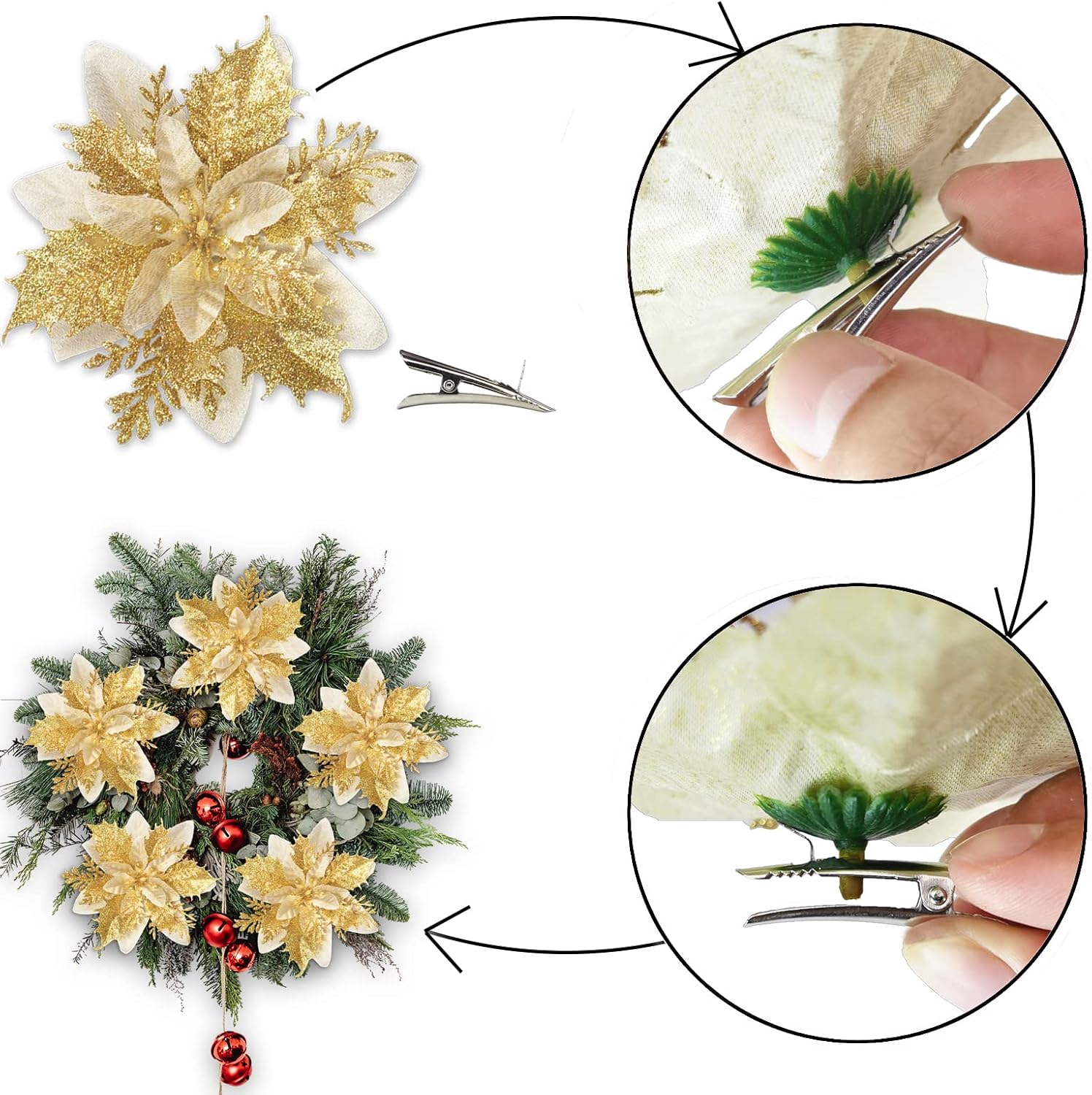 • ЛЕСНО ЗА ДЕКОРИРАНЕ Предлагаме 20 броя щипки с размер 1,77 инча, които са по-големи и по-лесни за декориране с изкуствени коледни цветя. Поставете основата на цветето в горната част на щипката. Можете да декорирате изкуствените коледни цветя навсякъде, както желаете. Не се притеснявайте за намирането на аксесоари.