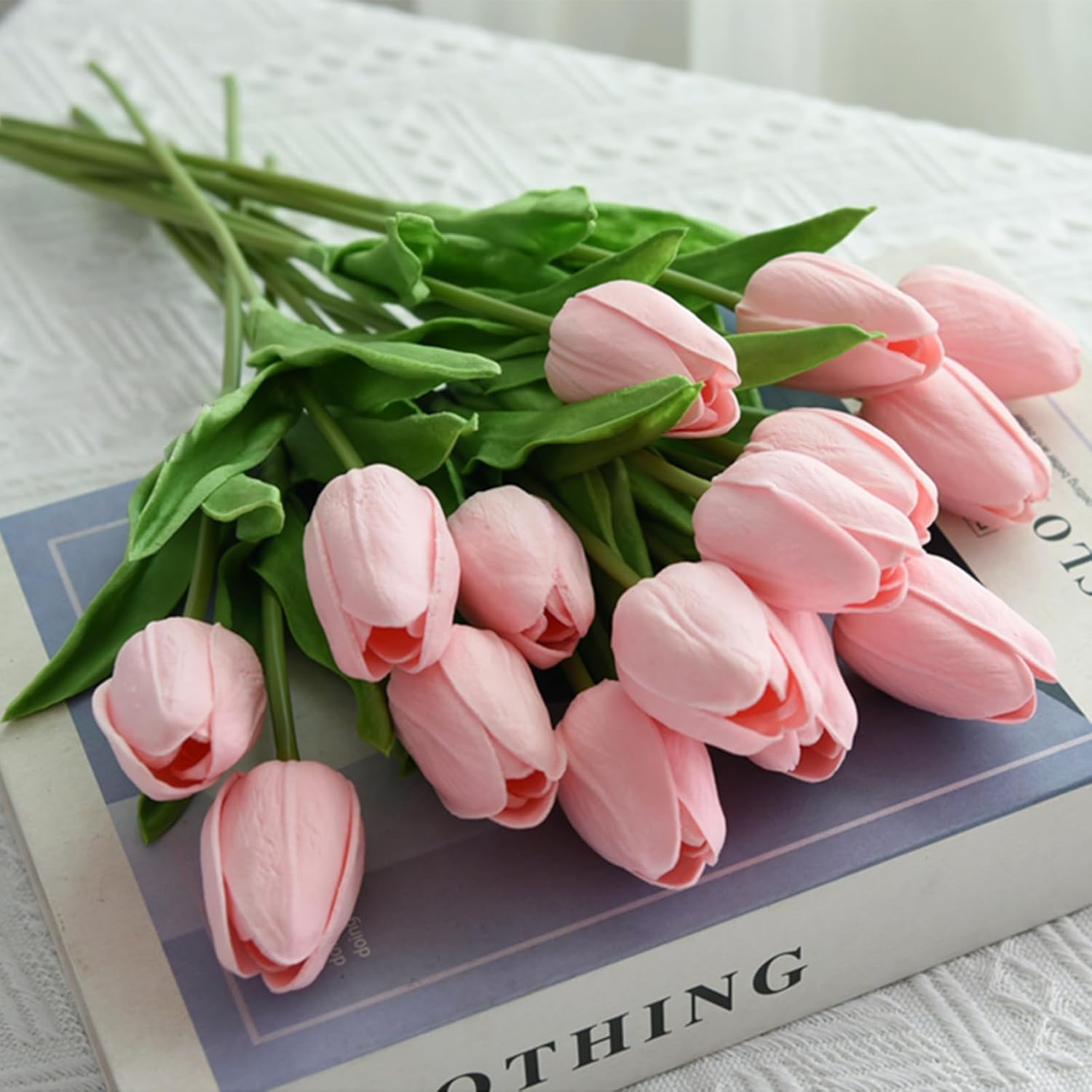 Пакет от 20 PU истински изкуствени лалета букет, изкуствени цветя лалета букети цветна аранжировка за дома стая сватбен букет парти централен букет, розов