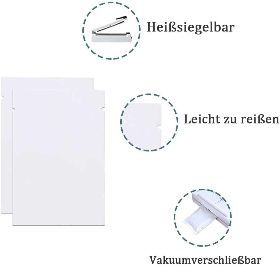 Пакет от 200 плоски майларови торбички с отворен връх, вакуумно запечатващи се, дългосрочно съхранение на храна, матови торбички, термозапечатващи се с разкъсващ се прорез (10 x 15 см (3,94 x 5,91 инча), бели)