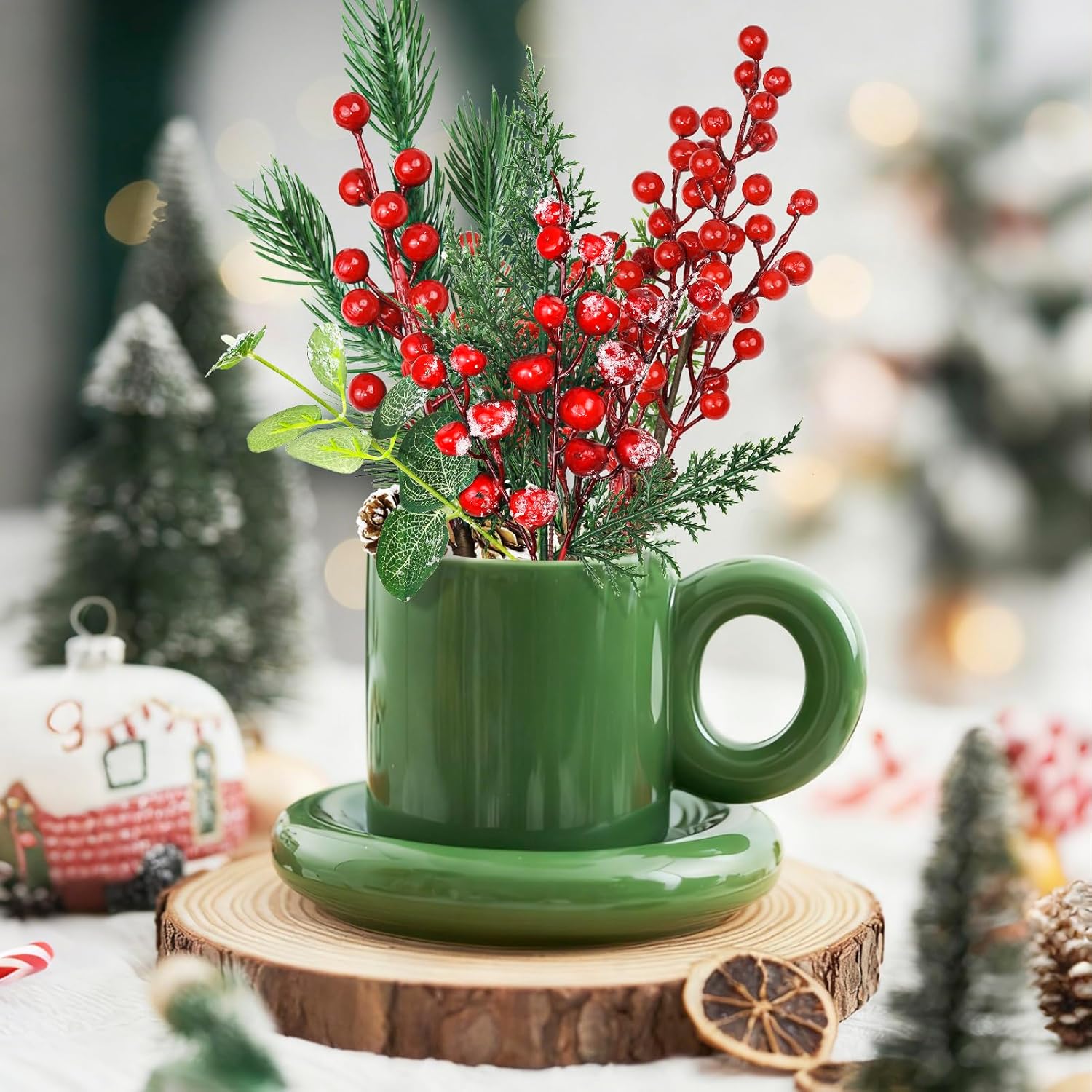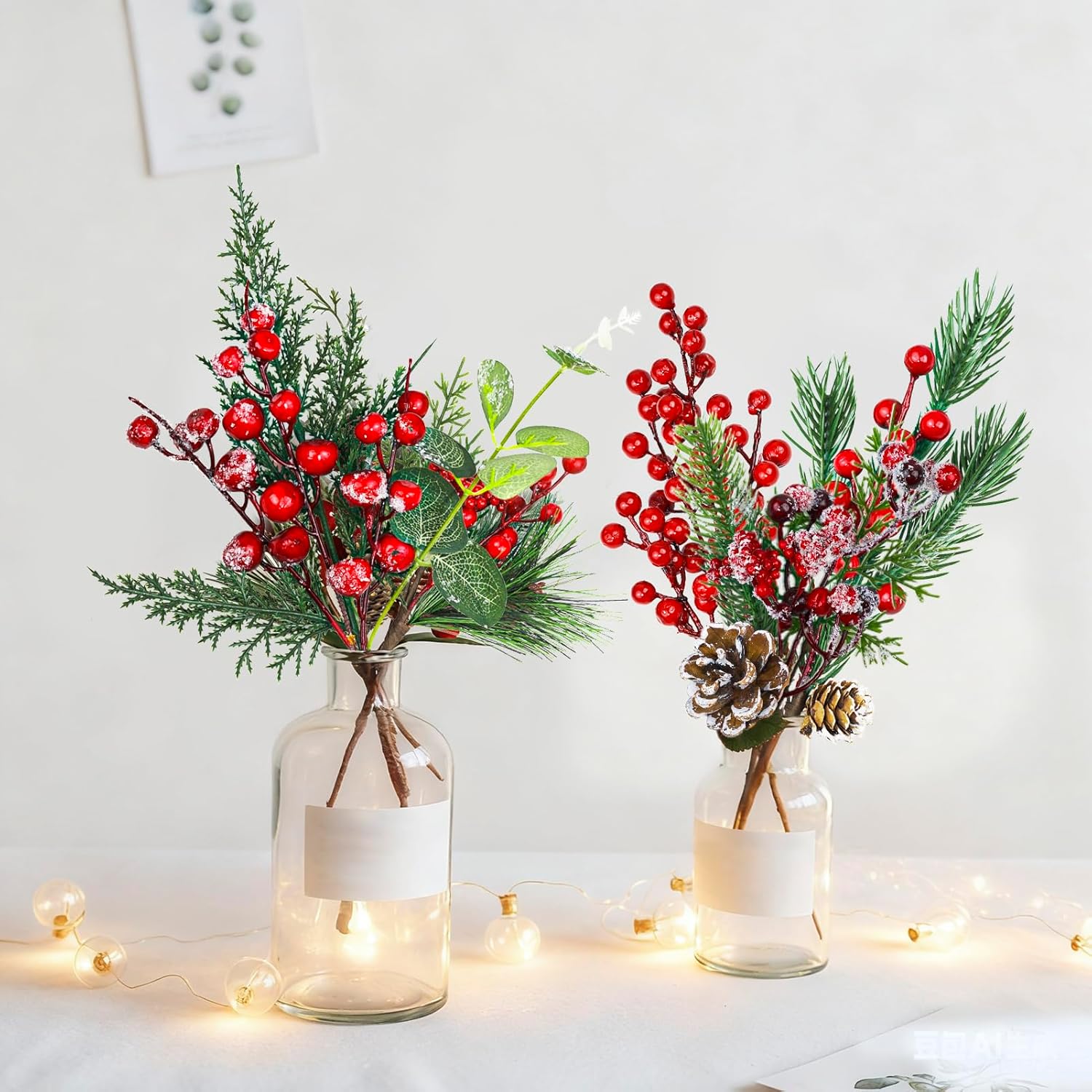 • Широко приложение Използвайте всяко изкуствено стъбло на коледно растение за многократна употреба поотделно или комбинирайте с други изкуствени стъбла на цветя, за направа на подаръчни кутии, ръчно изработени изделия „Направи си сам“, изработка на декорации за венци, за сватбени декорации и декорации за партита. Добавете коледна празнична атмосфера, това е и идеален подарък за семейството и приятелите.