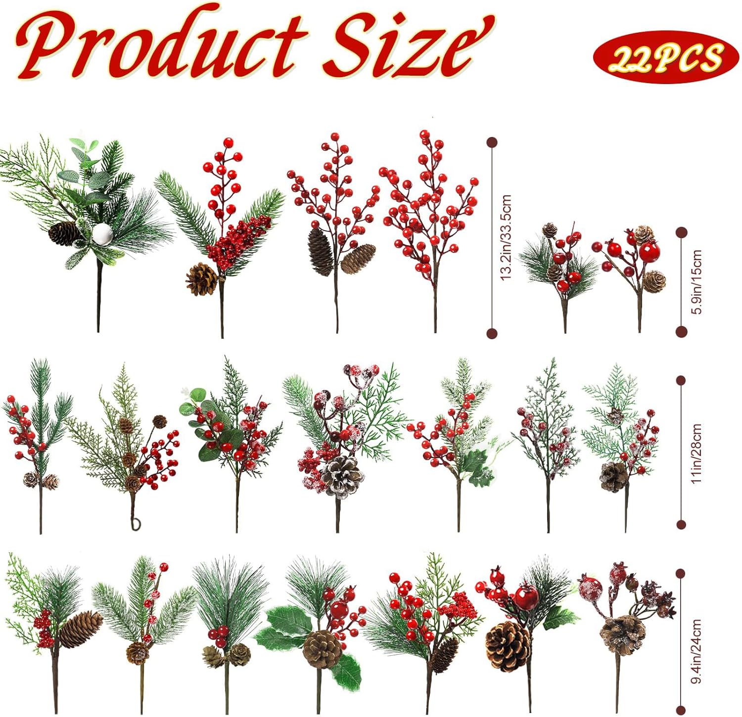 • Достатъчно количество и голям размер: 22 броя изкуствени коледни плодове в 20 различни дизайна, повечето изкуствени растения са с дължина 9,5-13,2 инча и следователно са по-дълги и по-големи от другите. Можете да ги завъртате и да ги регулирате на подходяща височина, така че да подхождат на много коледни декорации.