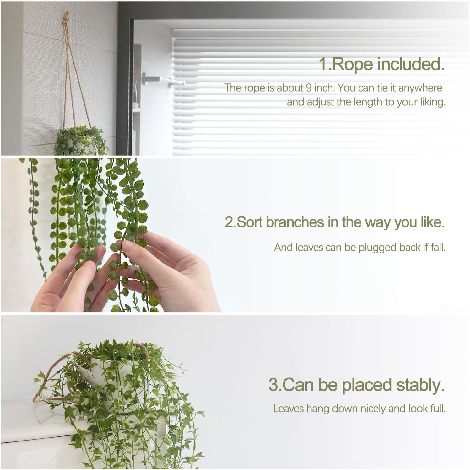• Без поддръжка: нашите изкуствени висящи растения в саксия за декоративна спалня са идеалното решение с ниска поддръжка за вашия пасторален стил. Просто избърсвайте праха от време на време и те ще останат ярки и жизнени през цялата година.