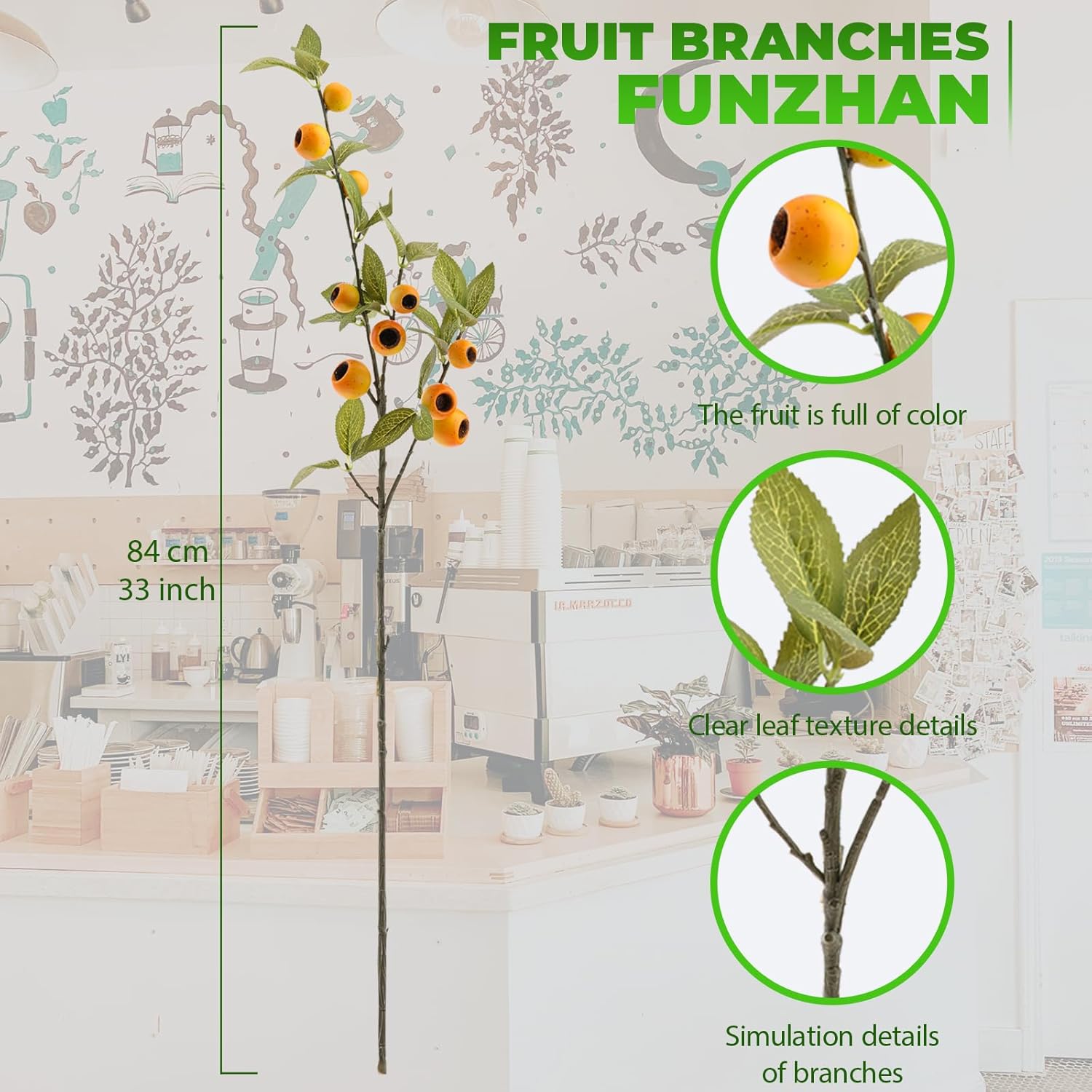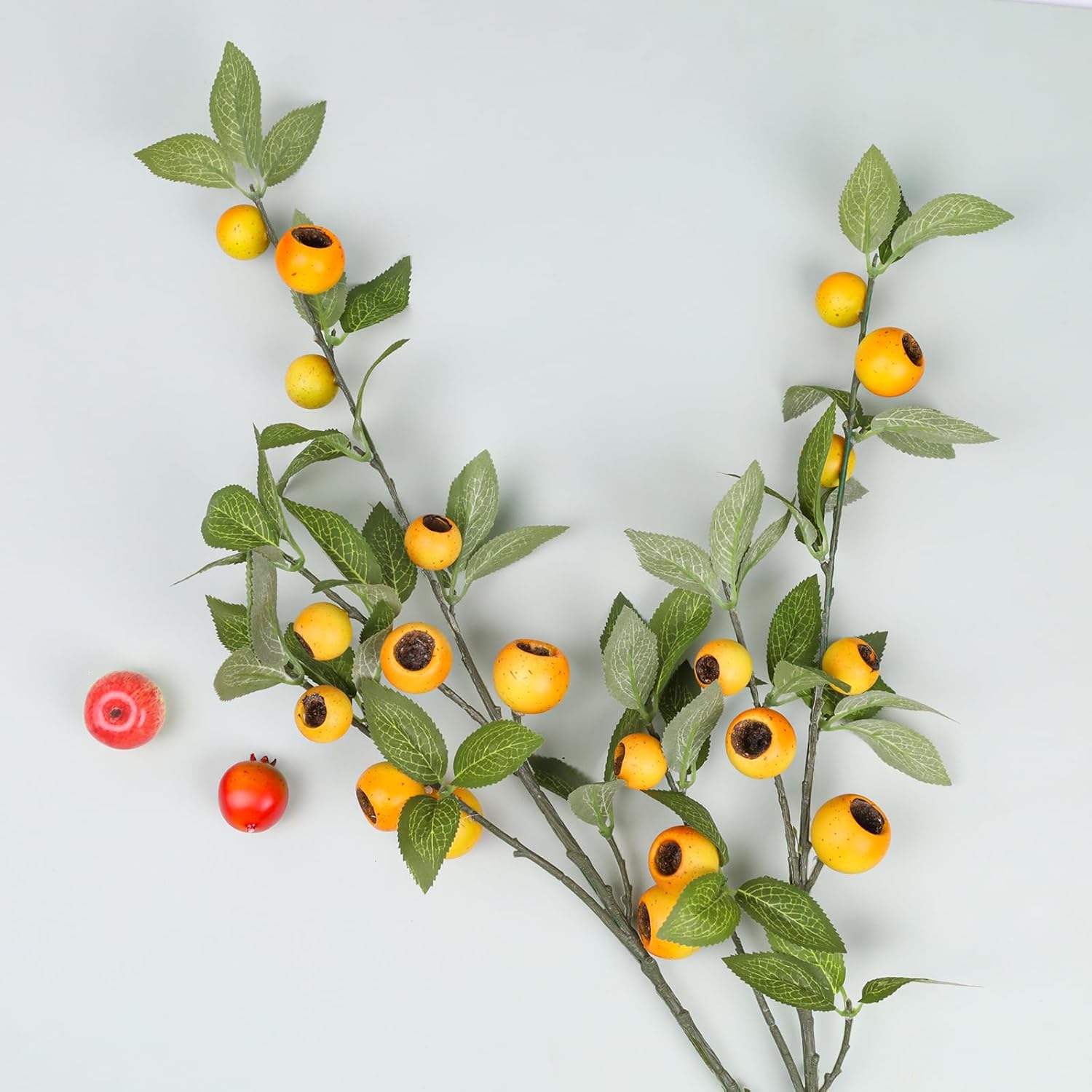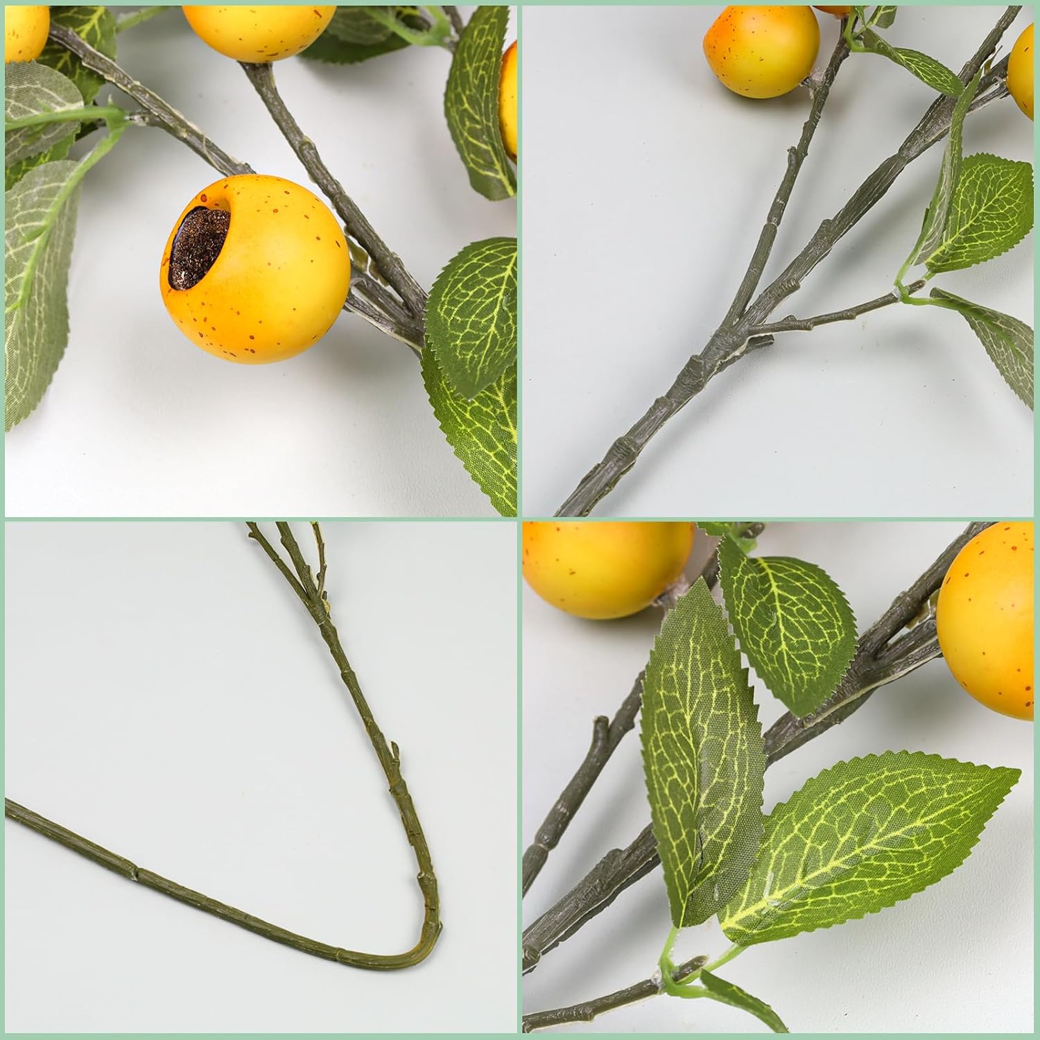 Fruit Garland Decor The leaves of artificial fruit branches are made of silk cloth, and the fruits are made of lightweight foam in vivid colors to add color to the branches. Artificial fruit branches do not require time, sunlight or water to be maintained - they just need to be dusted to look beautiful and vibrant, and you can always have a bouquet of fresh orange fruit.