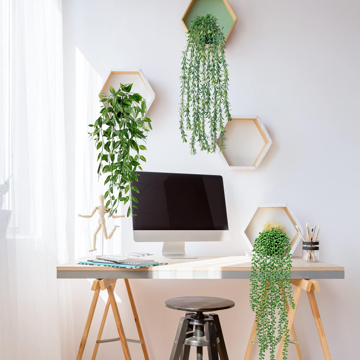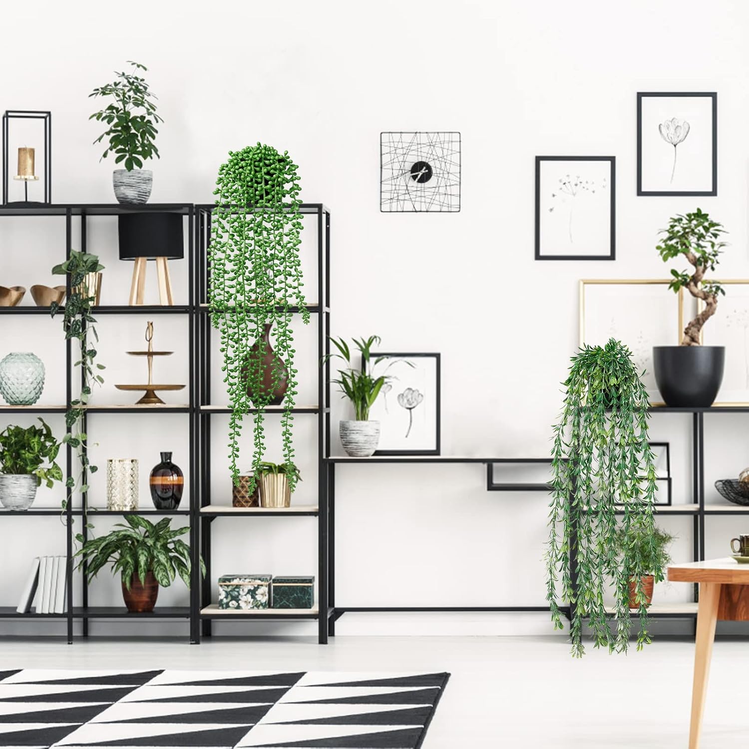 Истинските растения може да са с него, но не и изкуствените. Нашите реалистични висящи растения са богати и зелени, така че домът ви е пълен с жизненост. Можете да ги окачите на рафта с книги, прозореца, хола, банята и т.н.