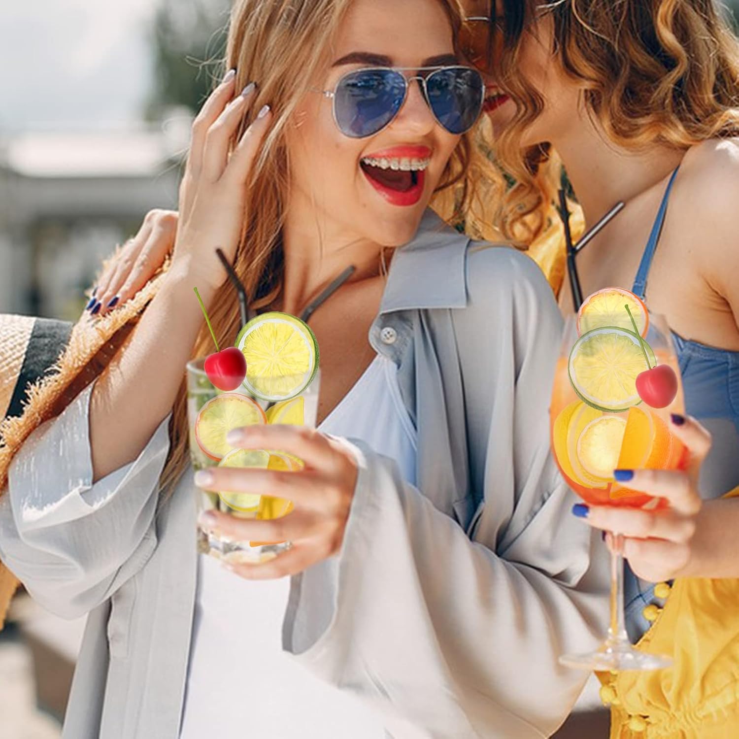 Забавление „Направи си сам“ : Можете да използвате тези резенчета лимон и череши, за да направите гирлянди, висулки, обеци, халки за коса, фиби и др. с лятна тематика. Забавлявайте се, докато творите!