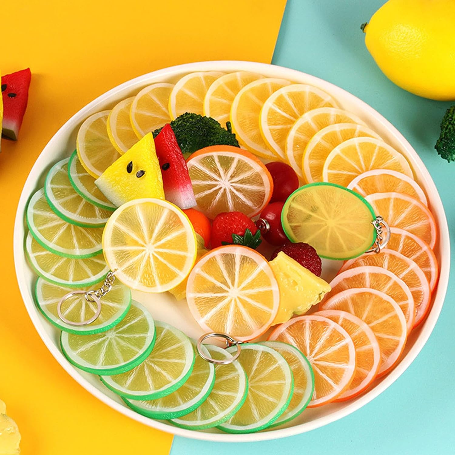 ПОДХОДЯЩИ ЗА ДЕКОРАЦИИ Нашите изкуствени резенчета лимон са идеални за декориране на вашата кухня и трапезария, което ги прави идеални за купи, кошници, централни елементи, фото реквизит и други декорации за дома.