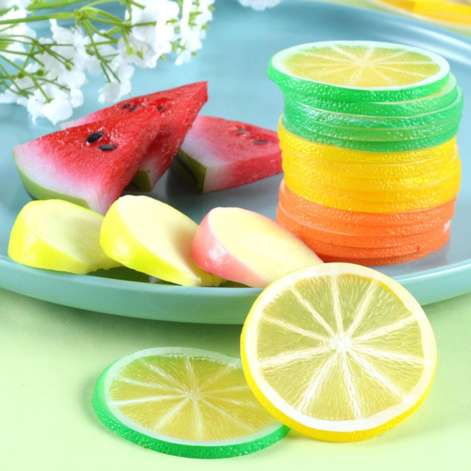 Тези изкуствени резенчета лимон имат реалистичен блясък и са идеални за добавяне на нотка живот към вашата кухня.
